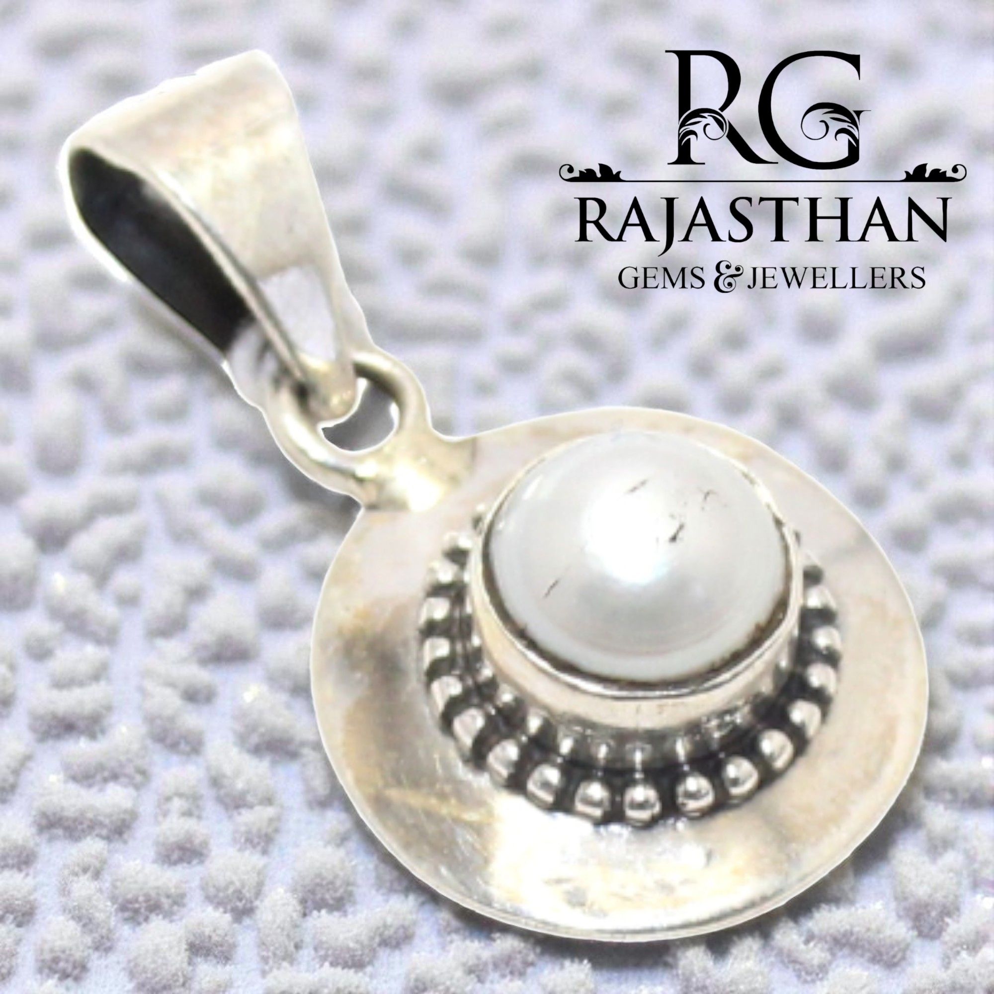 Rajasthan Gems Pendant 925 Sterling Silver Natural Freshwater Pearl Gem Stone Women Men Unisex Handmade Traditional Gift G897