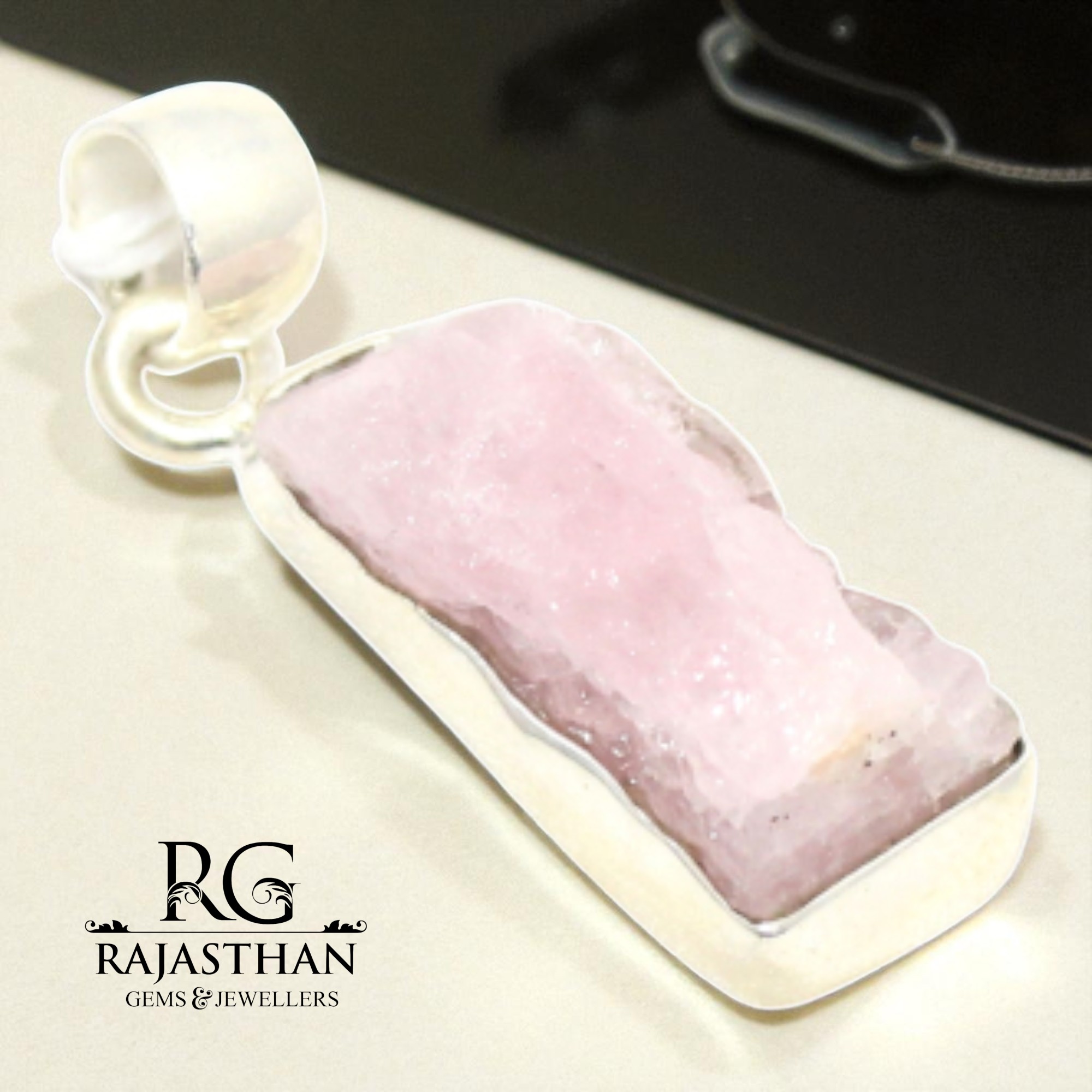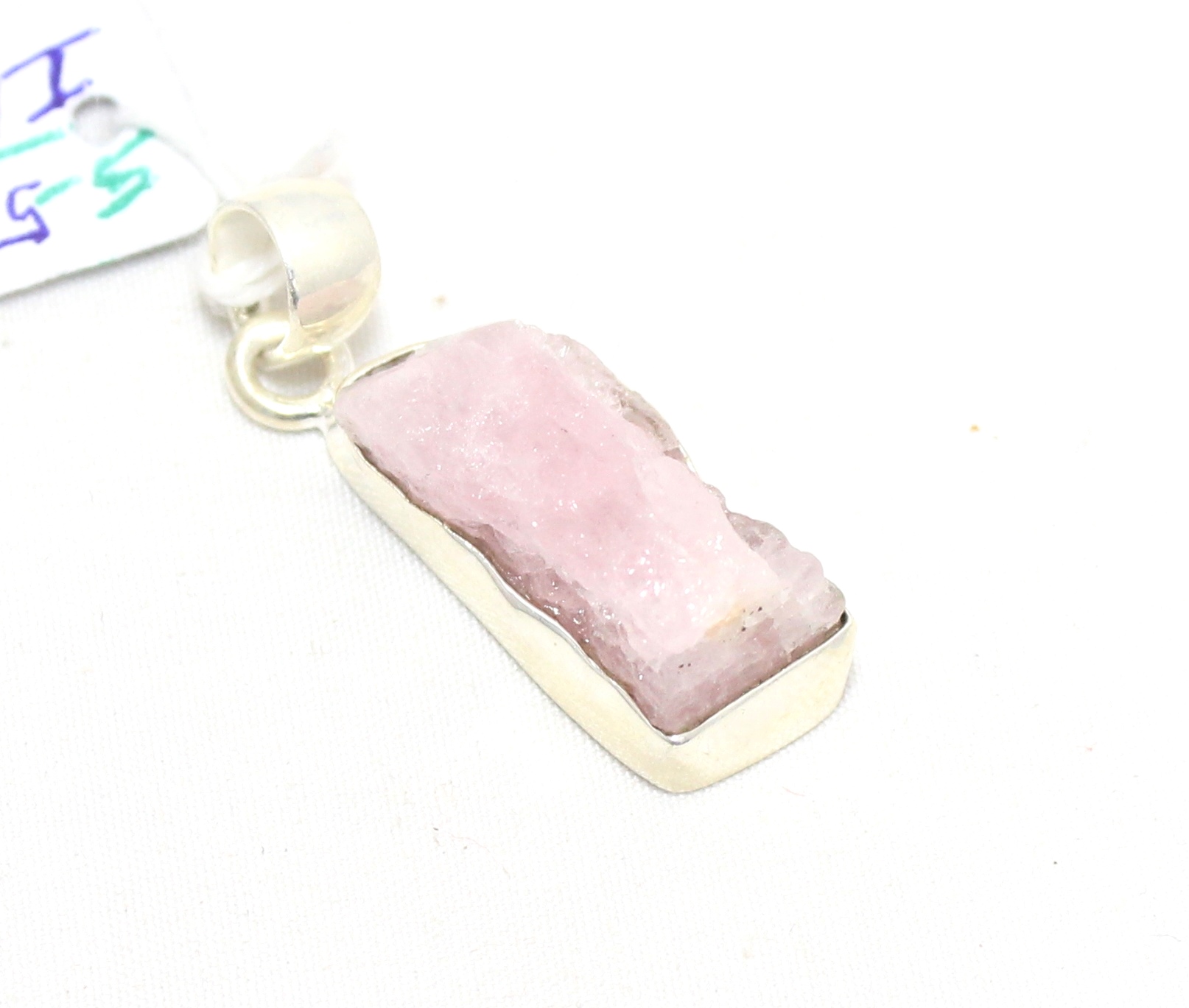 Rajasthan Gems Pendant 925 Sterling Silver Natural Rough Pink Rose Quartz Gem Stone Women Handmade Gift G825