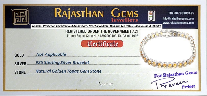 Rajasthan Gems Bracelet Silver Sterling 925 Jewelry Natural Golden Topaz Gem Stone Women Handmade Gift F943