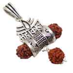 Rajasthan Gems Religious Pendant 925 Sterling Silver Rudraksha Rudraksh Bead Mahakal Mahadev Shiv Shiva Damru H238