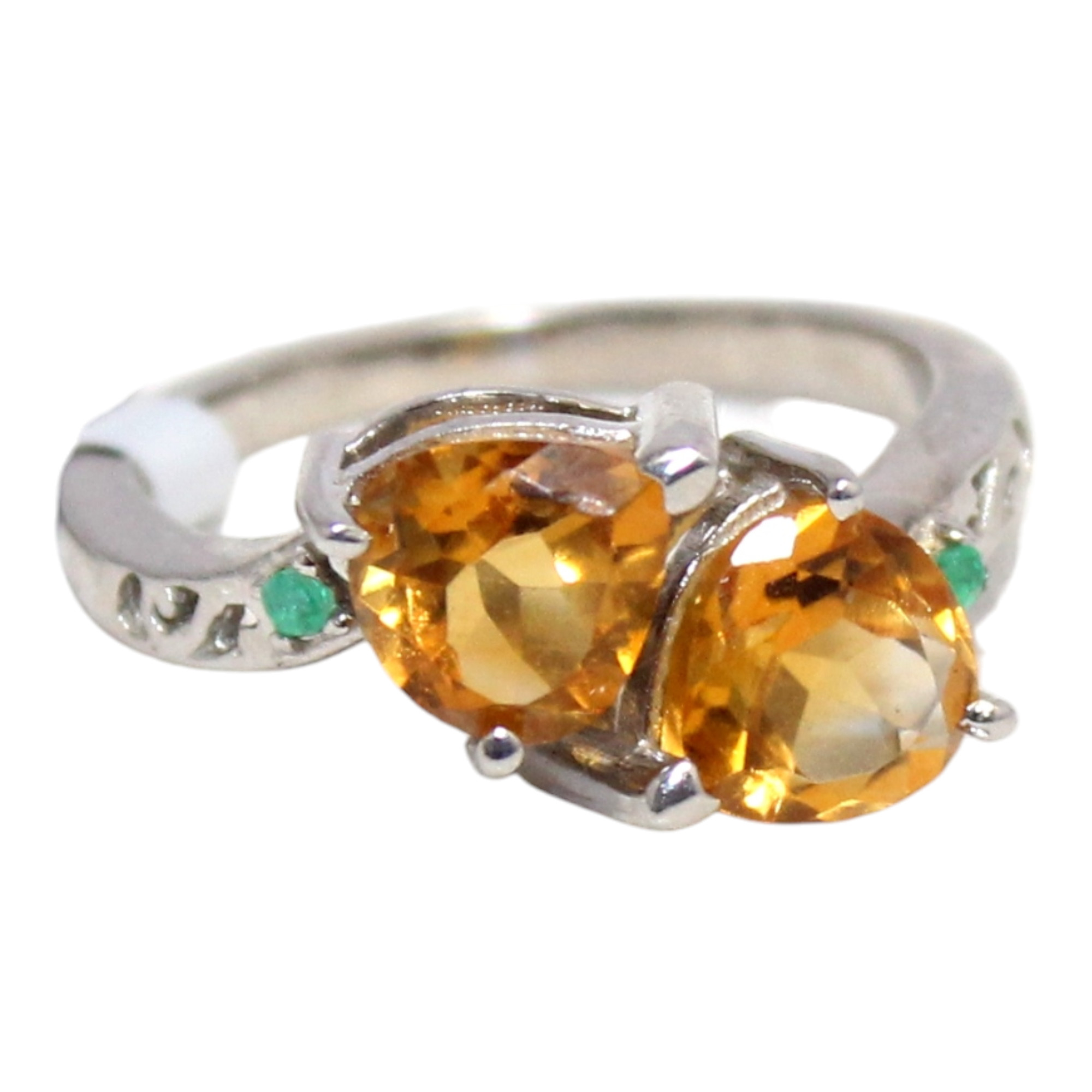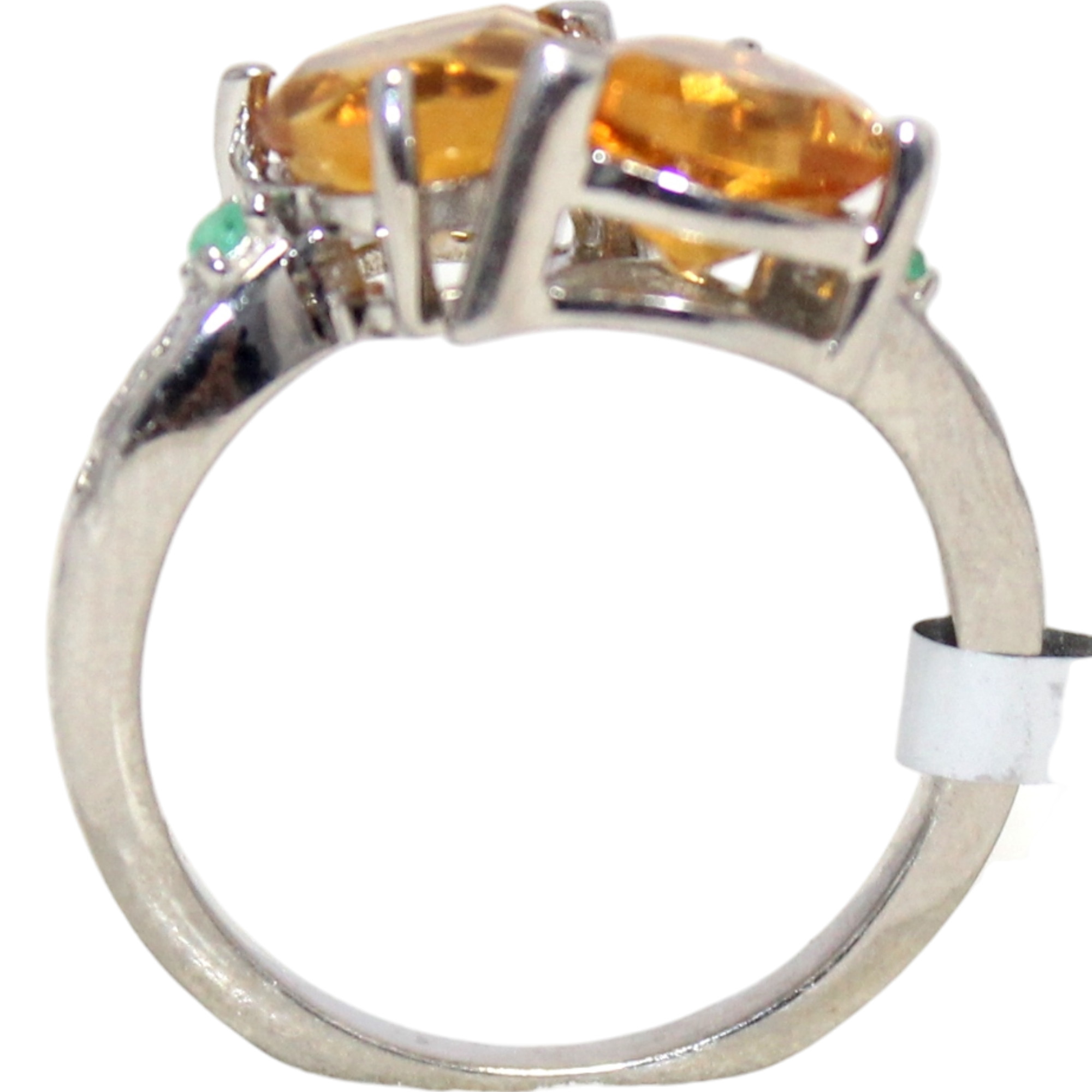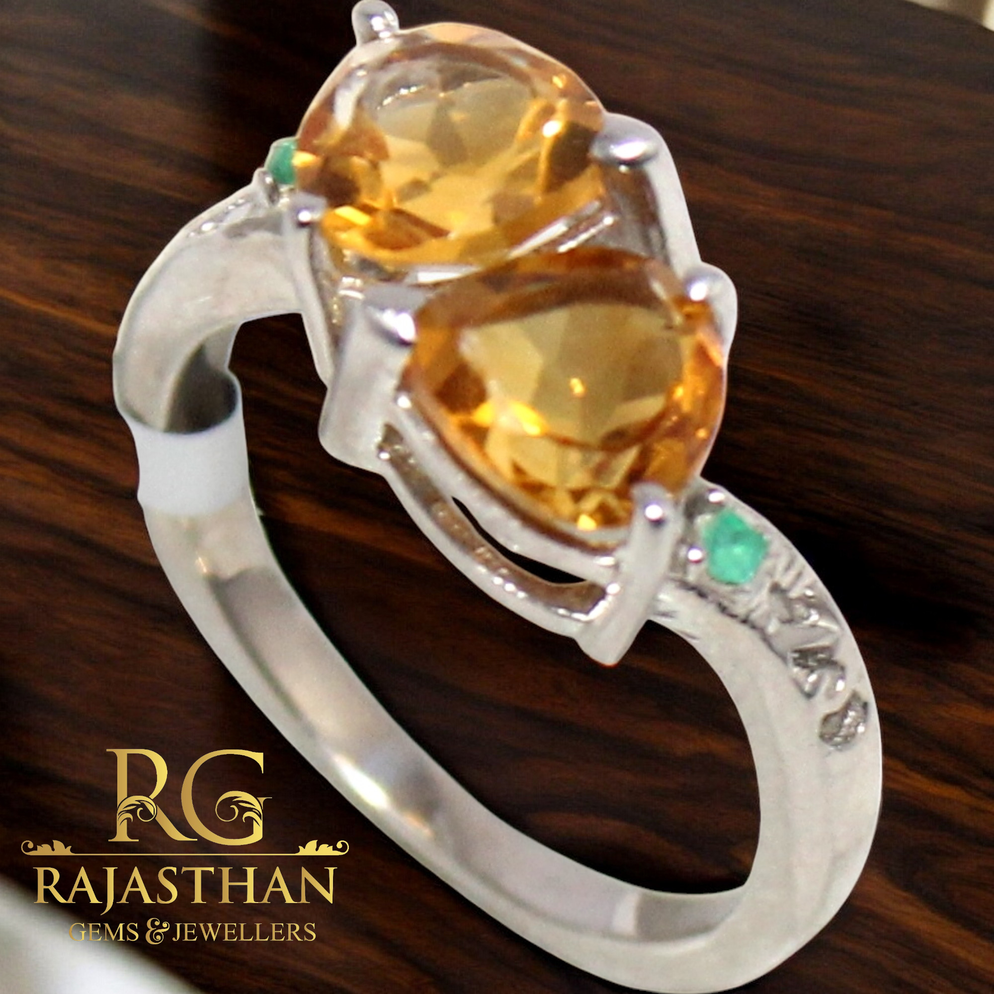 Rajasthan Gems Ring 925 Sterling Silver Natural Golden Topaz & Emerald Gem Stone Handmade Women Gift F238