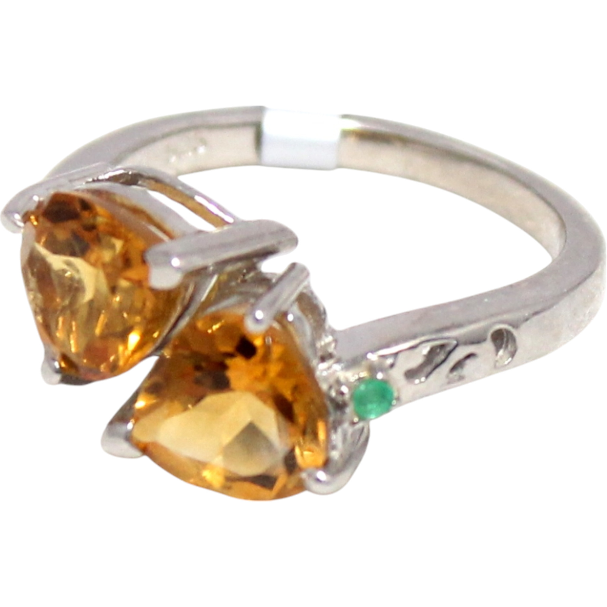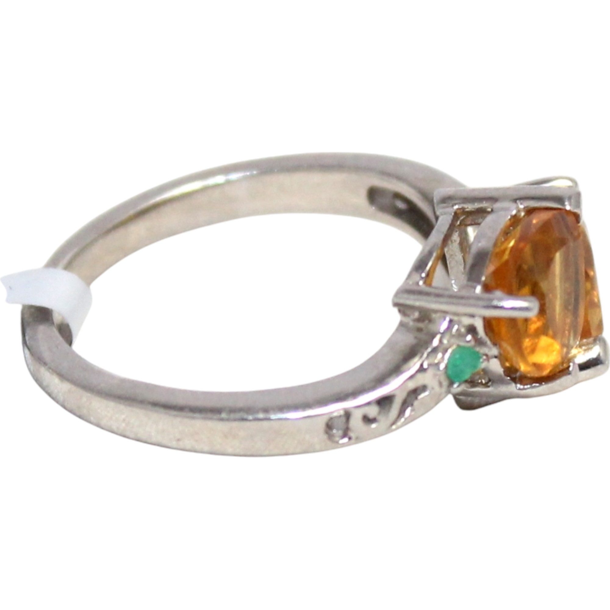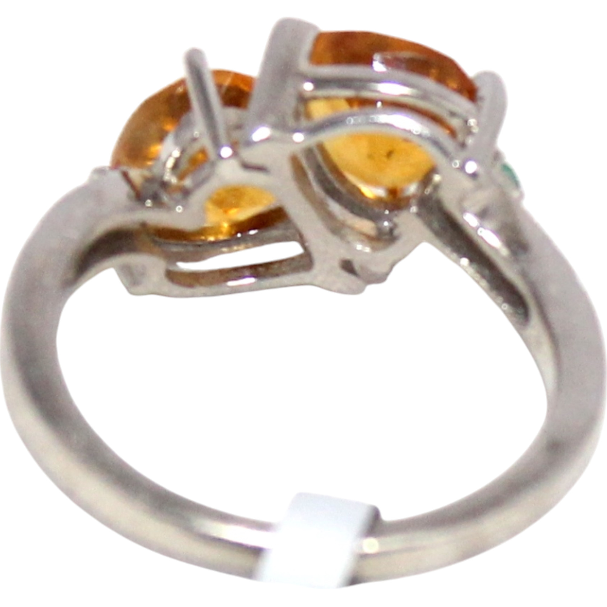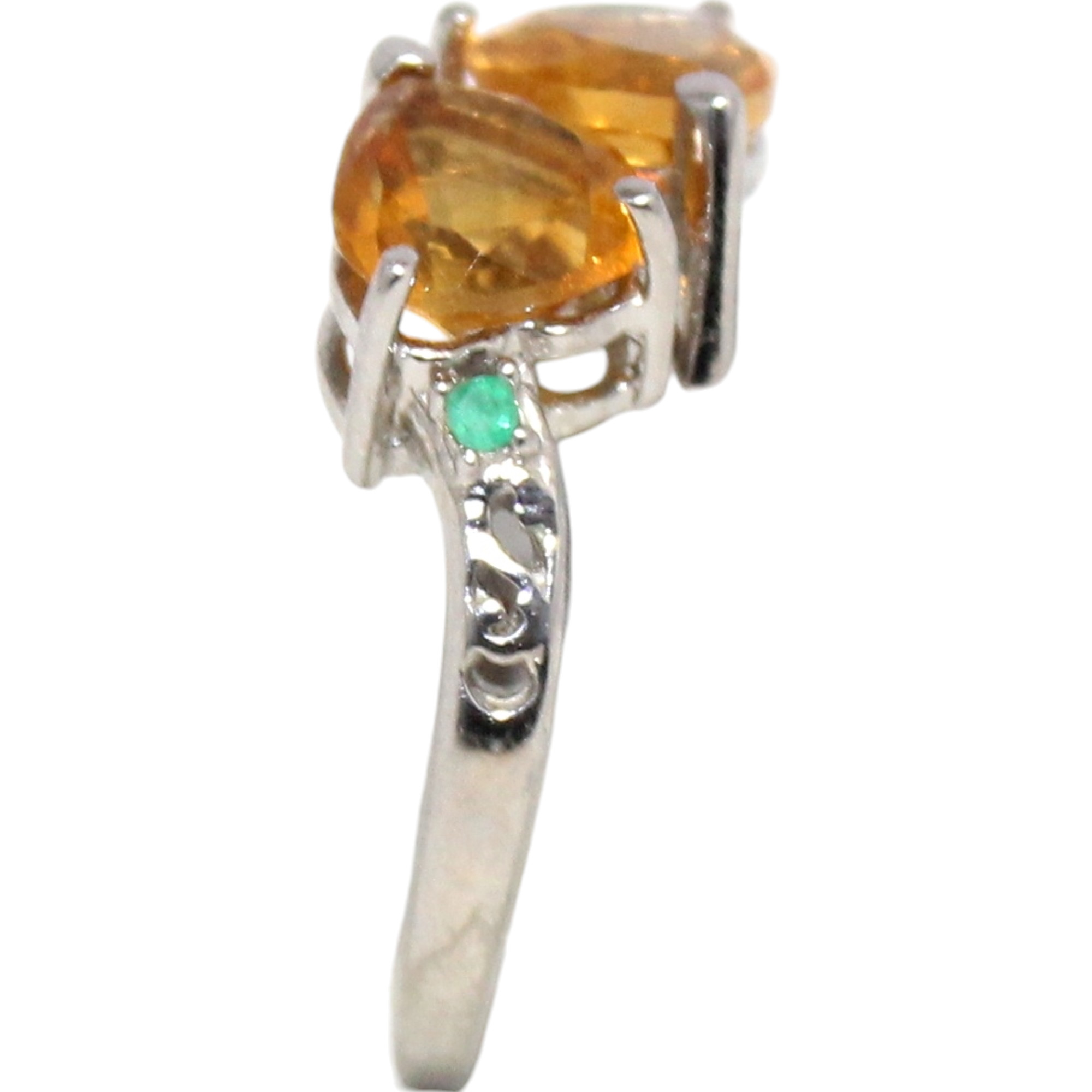 Rajasthan Gems Ring 925 Sterling Silver Natural Golden Topaz & Emerald Gem Stone Handmade Women Gift F238