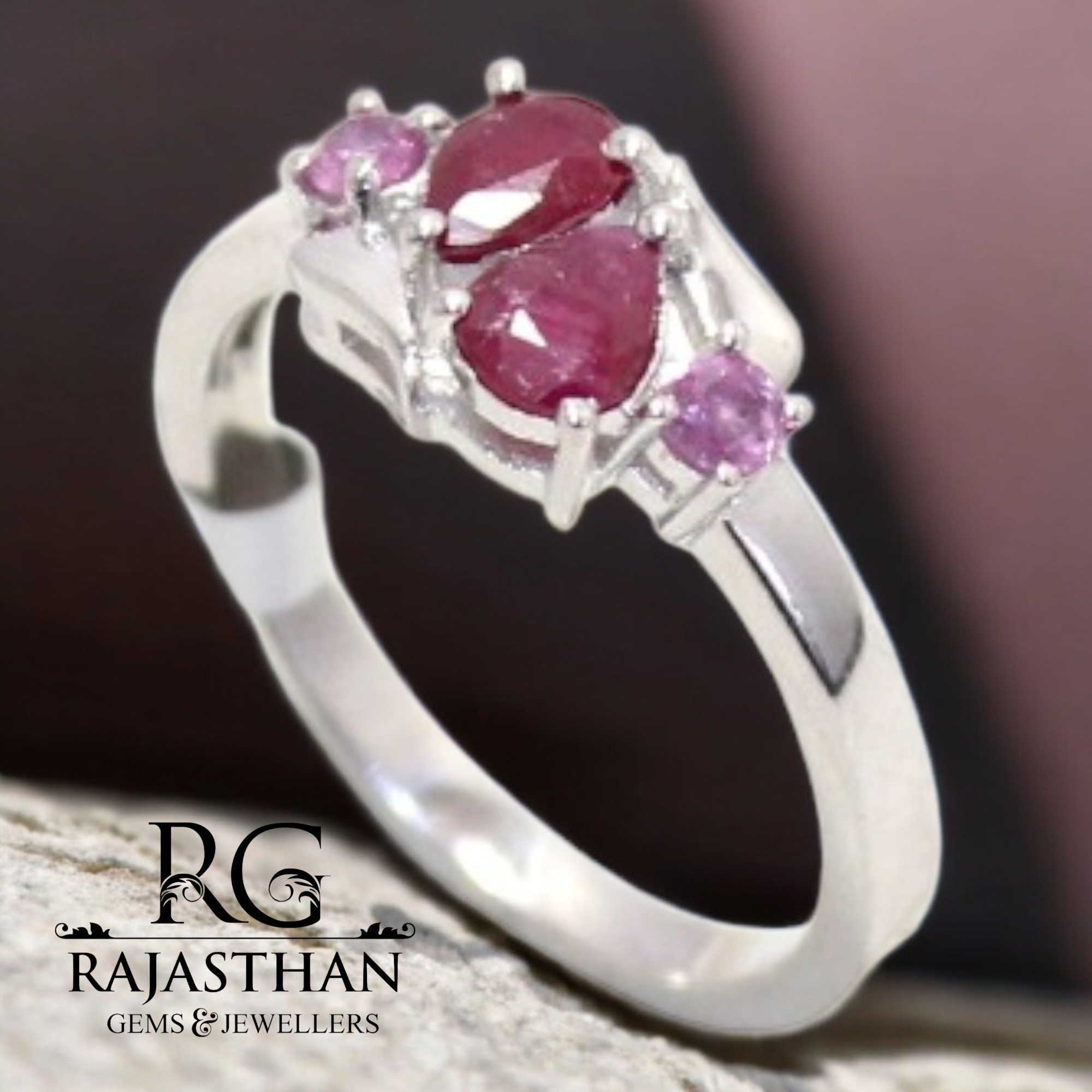 Rajasthan Gems Ring 925 Sterling Silver Natural Ruby Manik Gem Stone Women Handmade Gift H422