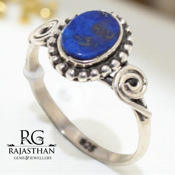 Rajasthan Gems Ring 925 Sterling Silver Women Natural Lapis Lazuli Gem Stone Handmade Gift Gemstone H095