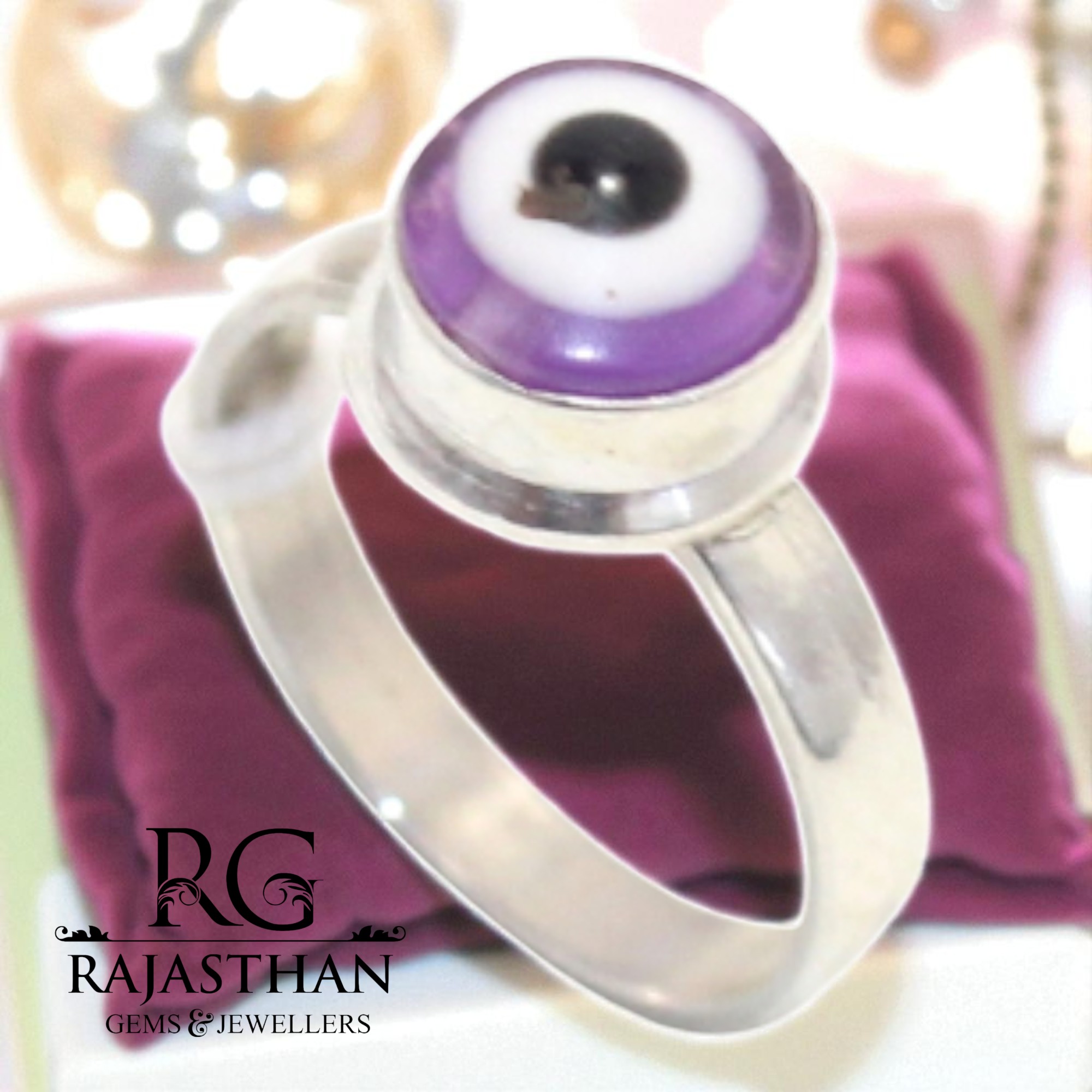 Rajasthan Gems Ring Nazariya Colorful Evil Eye 925 Sterling Silver Stone Women Men Unisex Handmade Gift G845