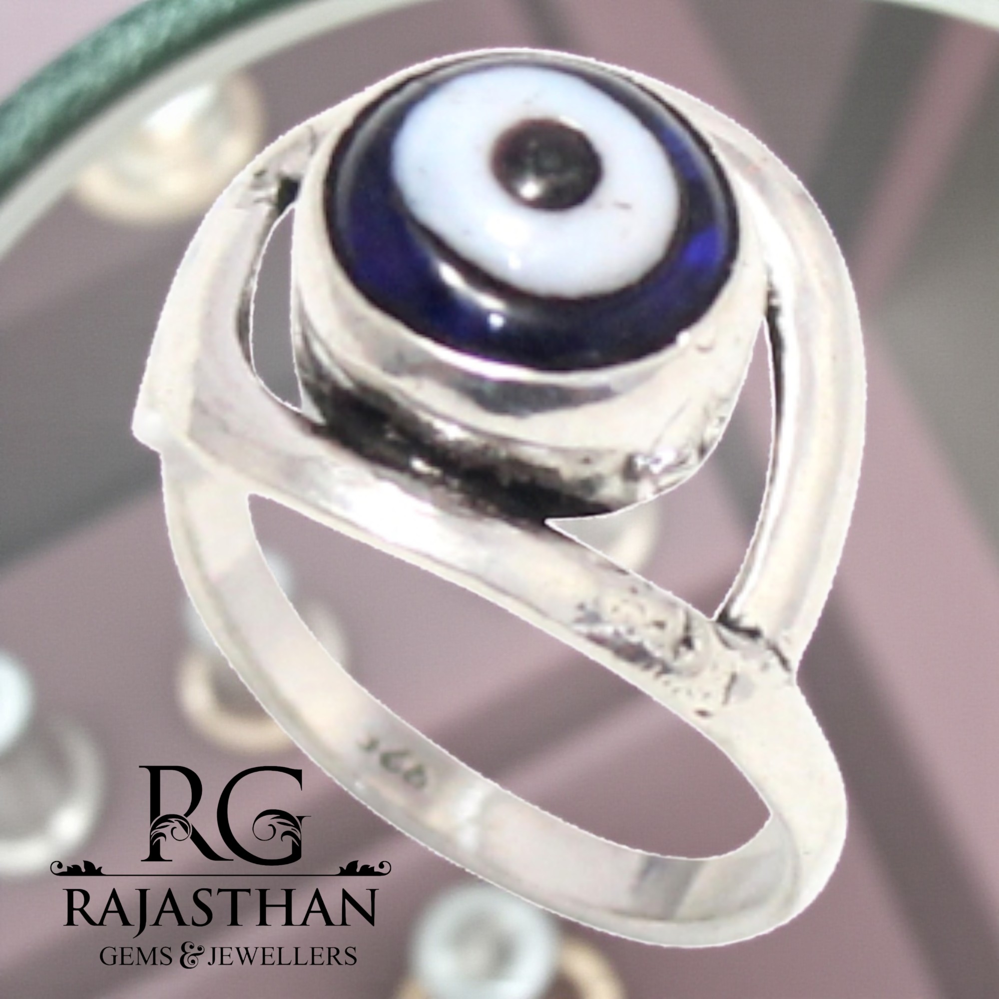 Rajasthan Gems Ring Nazariya Colorful Evil Eye 925 Sterling Silver Stone Women Men Unisex Handmade Gift G845