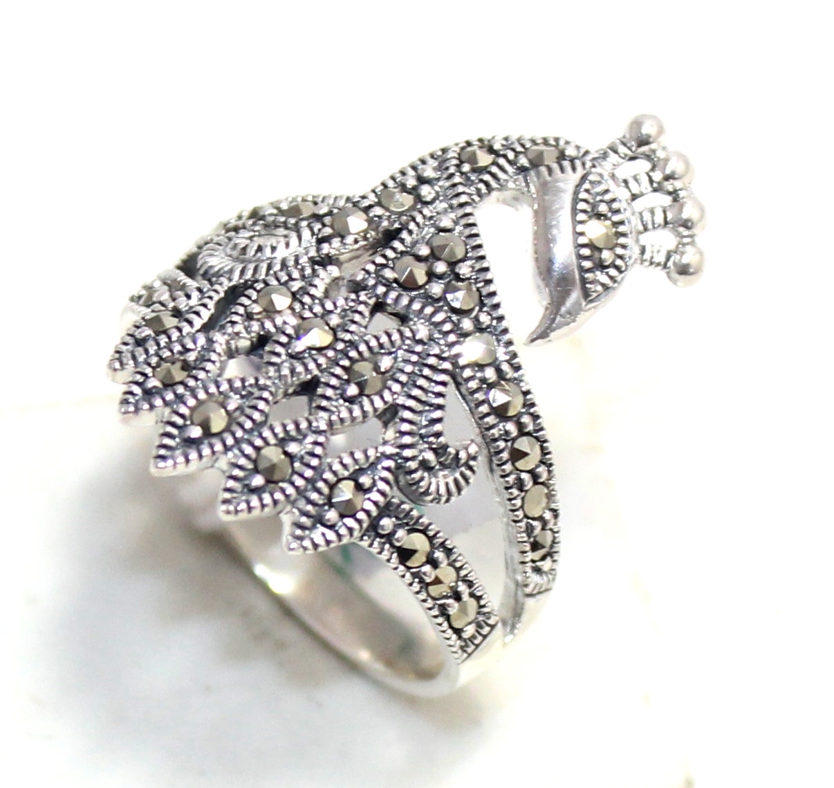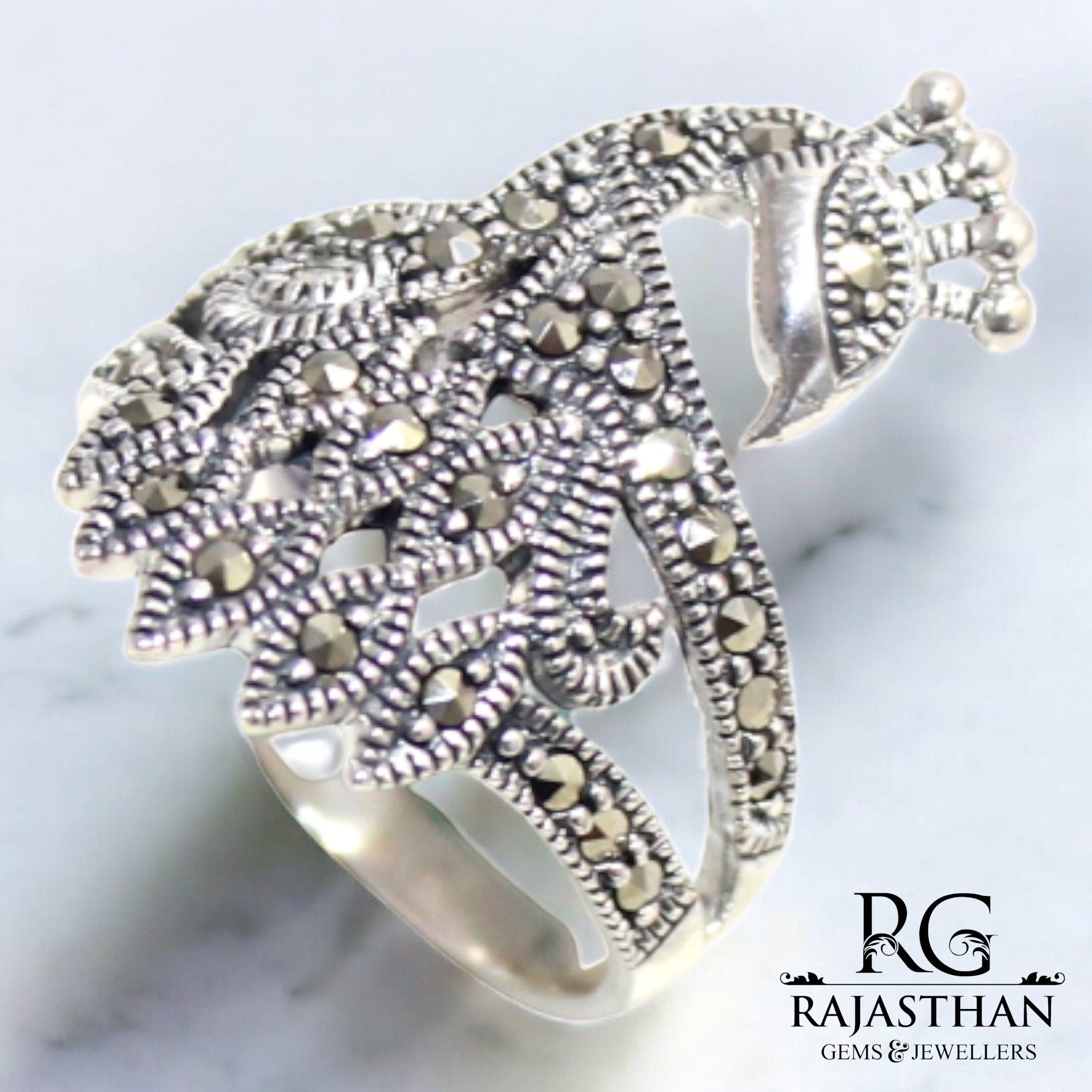 Rajasthan Gems Ring Peacock 925 Sterling Silver Marcasite Stone Handmade Unisex Men Women Gift G412