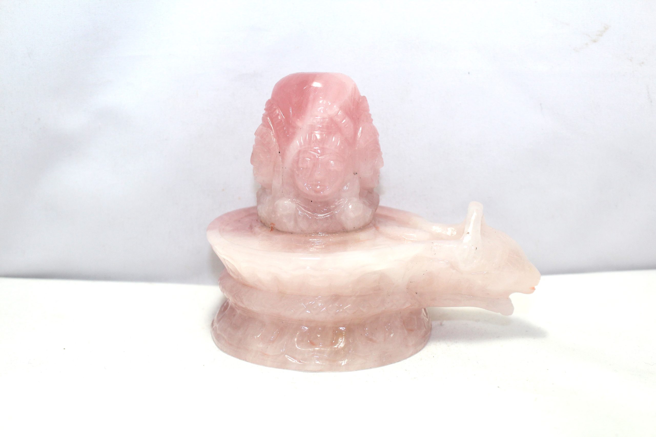 IDOL: Panchmukhi Shiva ling: As a mukhalinga, that is, a depiction of linga with faces on it, the Panchamukhi Shivalinga is markedly different from the simpler Shivalinga. It represents the five aspects of Shiva and along with that the five elements and the four cardinal directions. The five aspects of Shiva are Vamadeva, Tatpurua, Aghora, Sadyojata, and Isana (Shiva as the Concealer, the Cosmic Being, the Destroyer, the Revealer, and the Lord). The five-fold aspects also represent human beings’ five bodies or koshas, the five breaths, five directions, five elements, five senses, and five colors. STONE: Rose Quartz. A finely hand carved figurine which is made from Semi precious natural stone comes in attractive Vintage old Look. This product is handmade and is ideal for home decor and Gift. *𝗡𝗢𝗧𝗘* *The image is taken of the actual item per item. *The size is a guide. Small errors may occur. *Because it is a natural stone, there may be small chips, dents, distorted parts, and cracks. *We try to make the colors as natural as possible, but the colors displayed may differ depending on your display environment.
