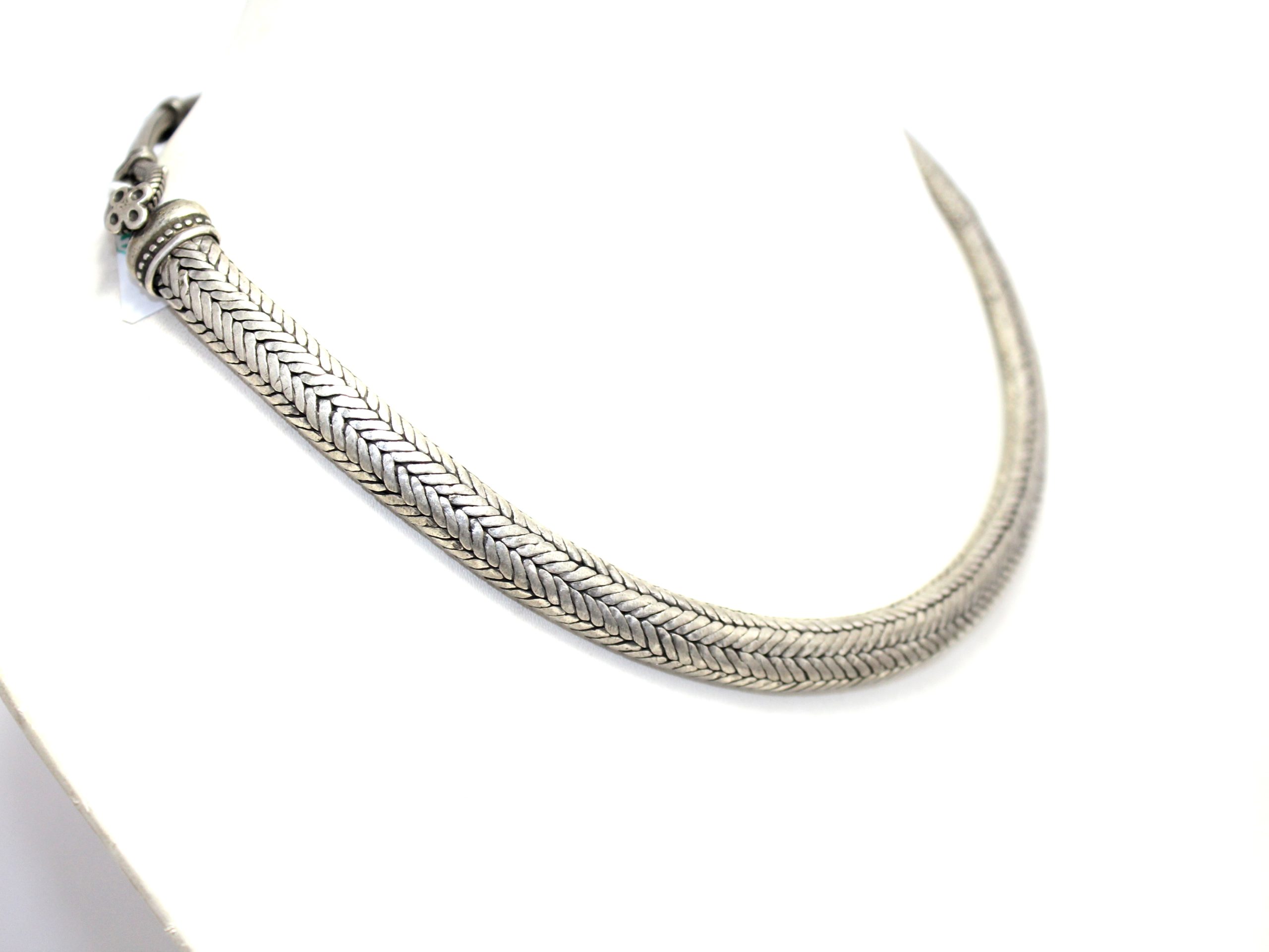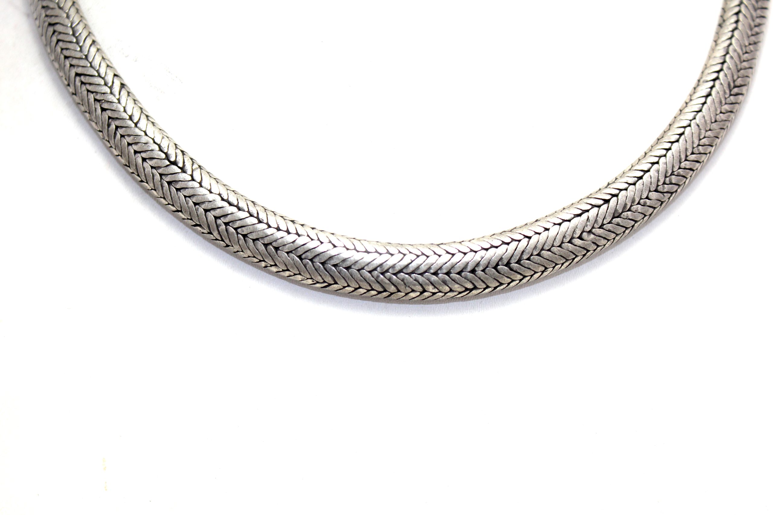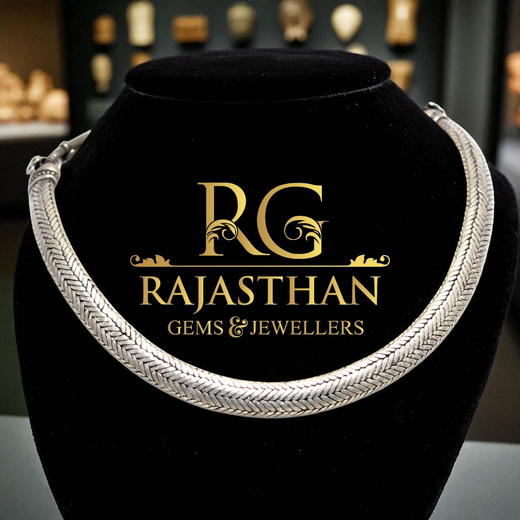 Rajasthan Gems Snake Chain Solid Silver Necklace Half Round Women Men Solid Handmade Unisex Mens Gift G802