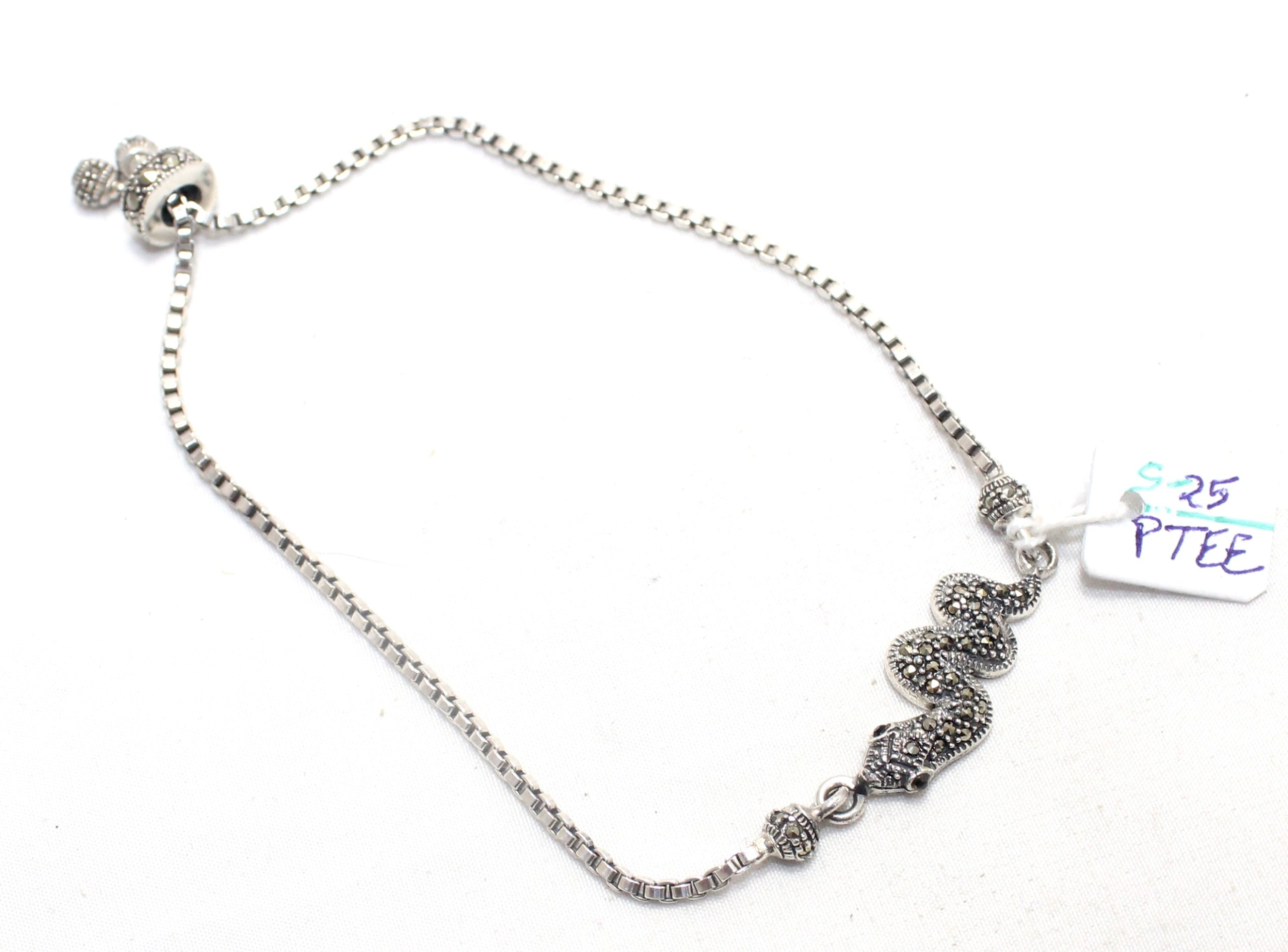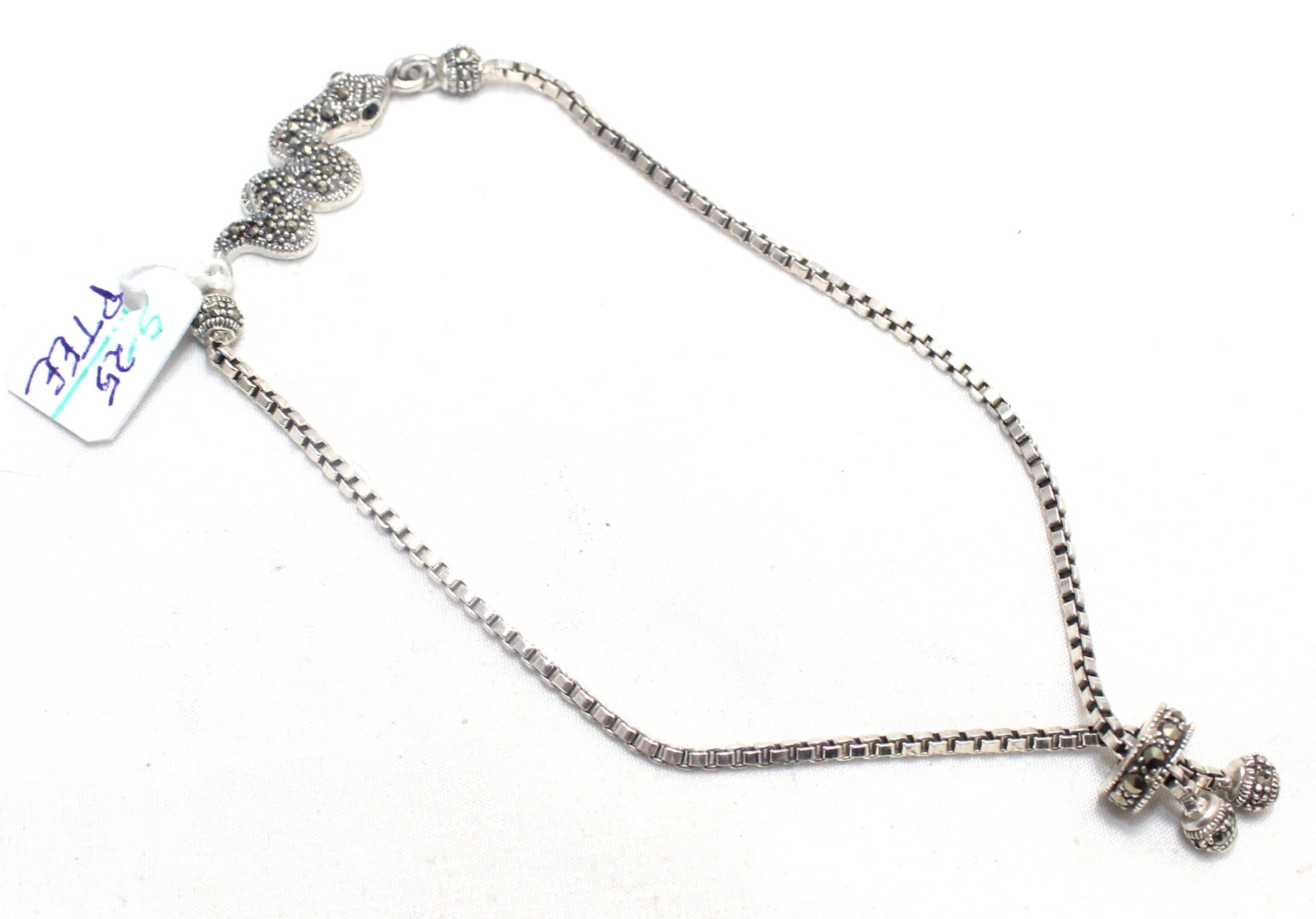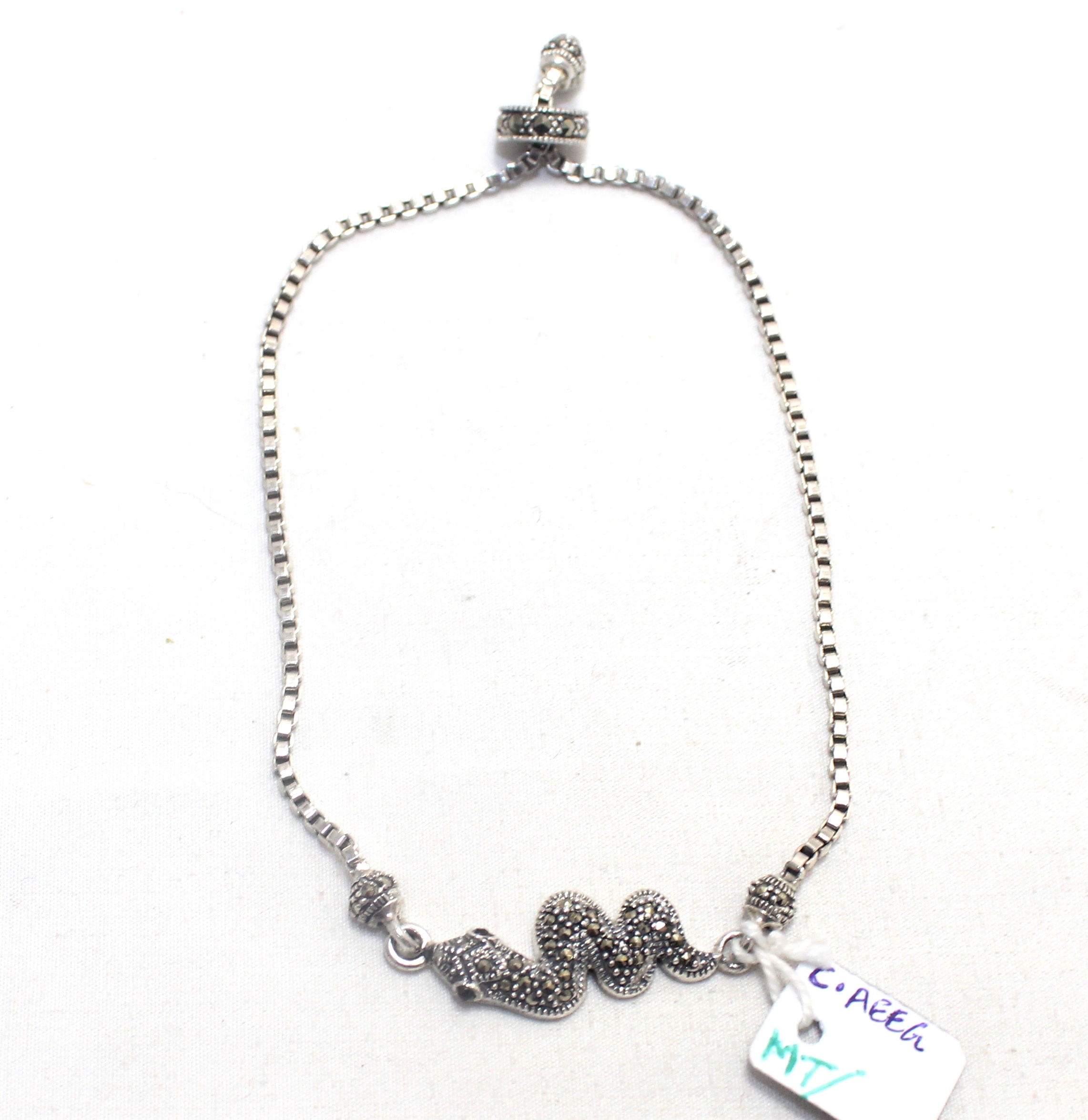 Rajasthan Gems Snake Charm Bracelet 925 Sterling Silver Slider Ball Clasp Adjustable Marcasite Stone Women Handmade Gift G302