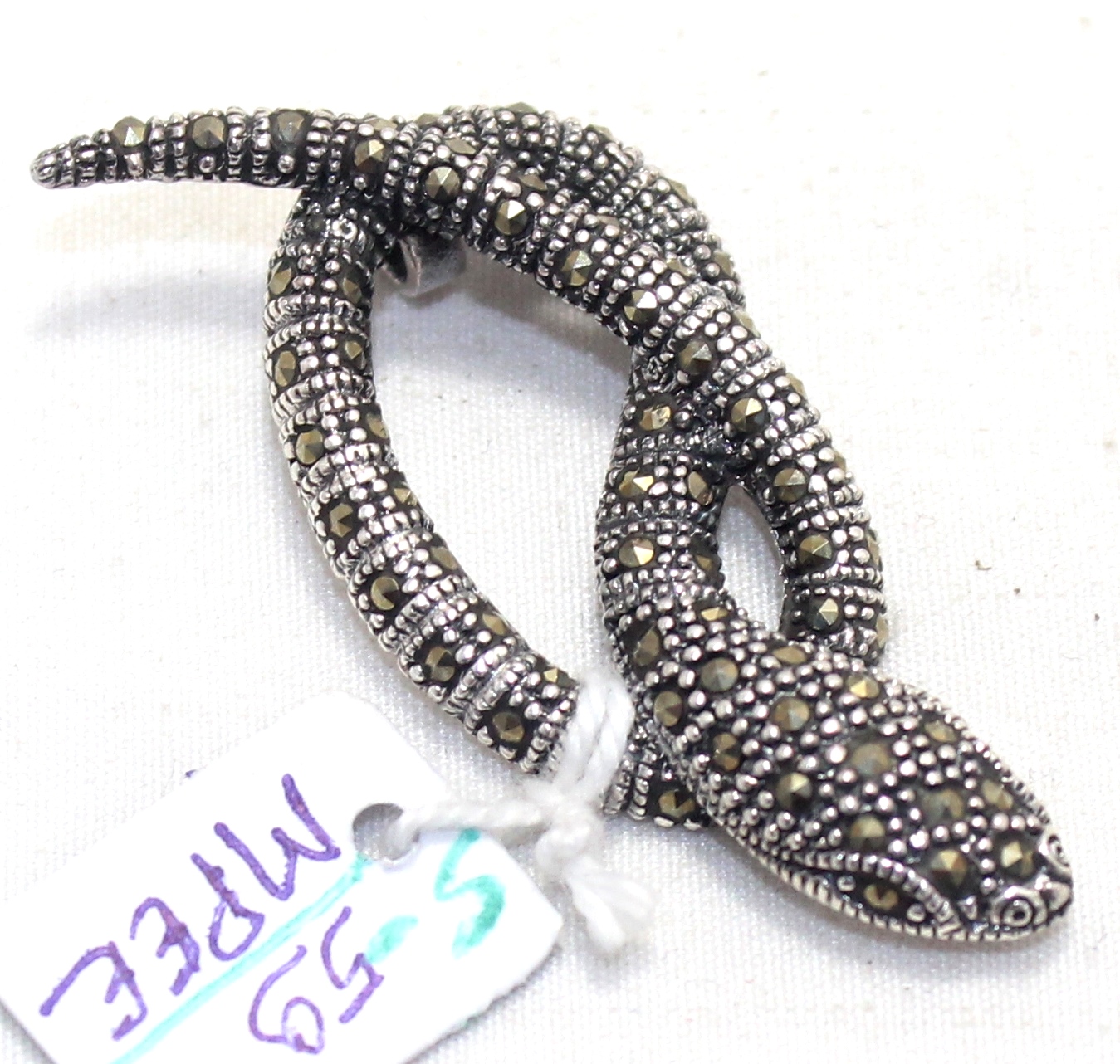Rajasthan Gems Snake Charm Pendant 925 Sterling Silver Marcasite Stone Women Unisex Handmade Gift G259
