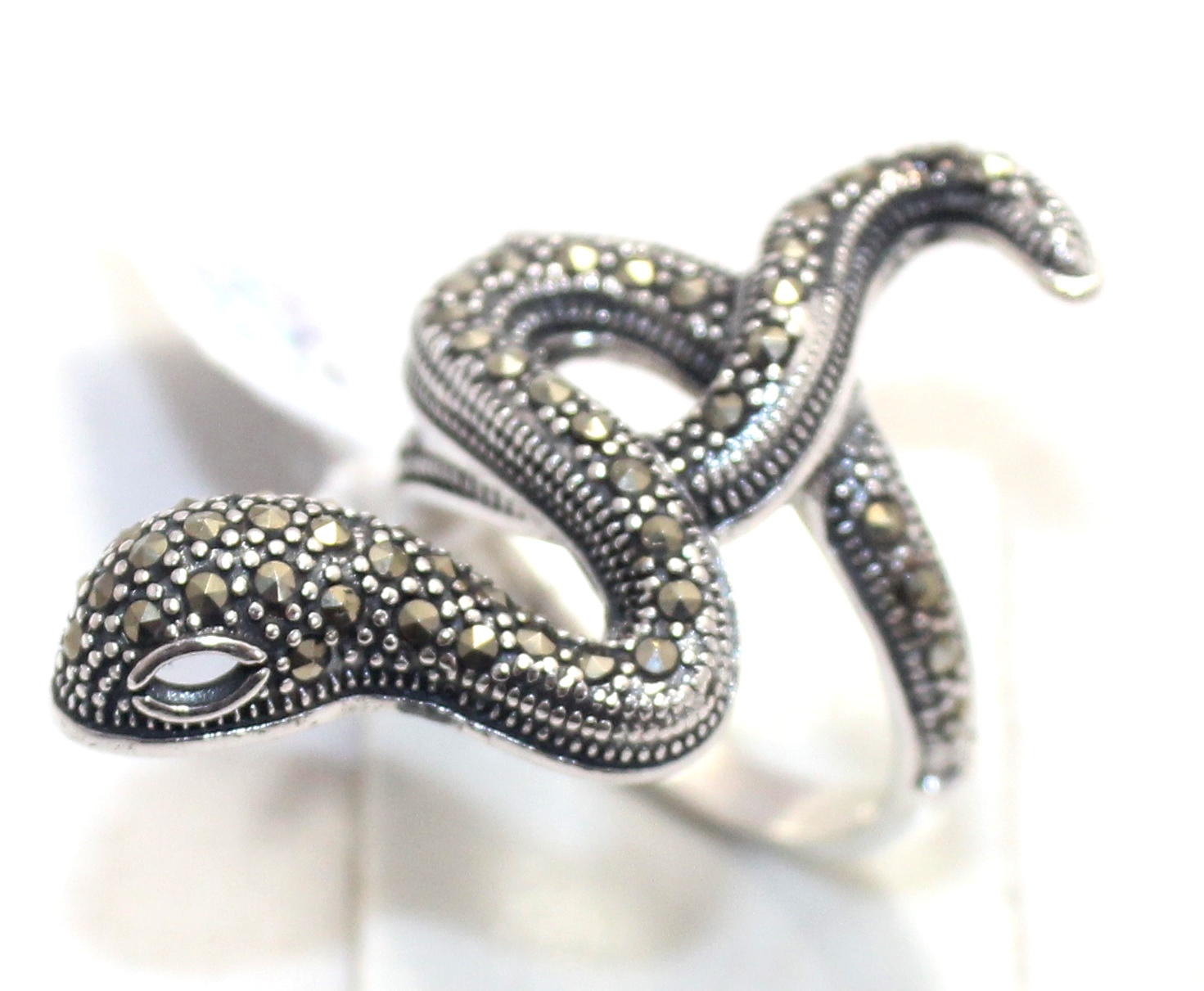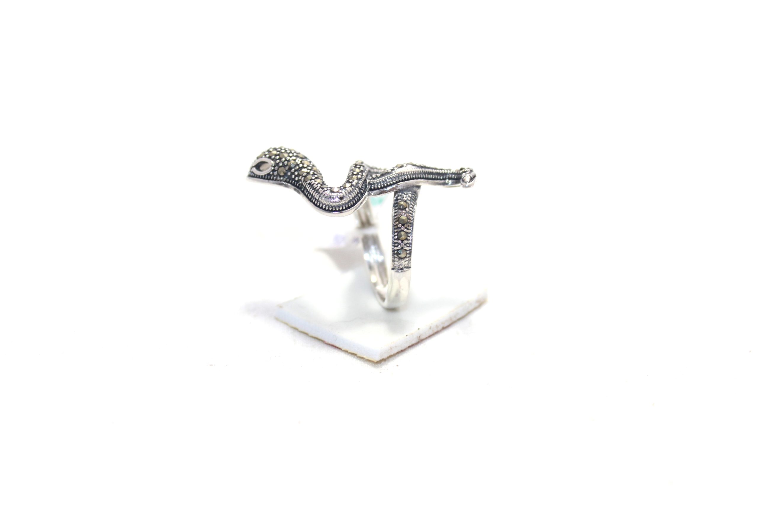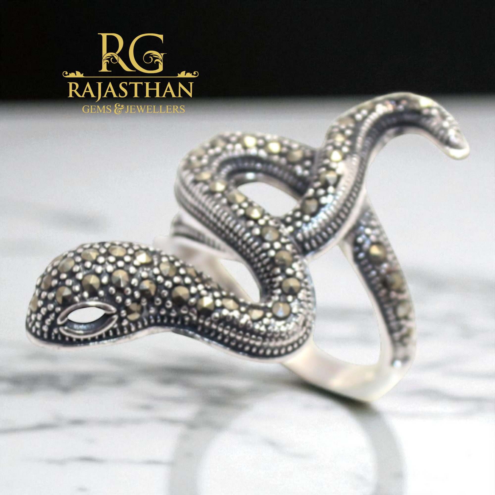 Rajasthan Gems Snake Ring 925 Sterling Silver Handmade Marcasite Stone Unisex Women Gift G300