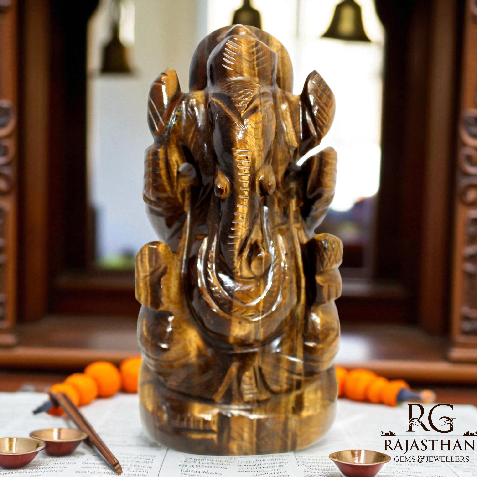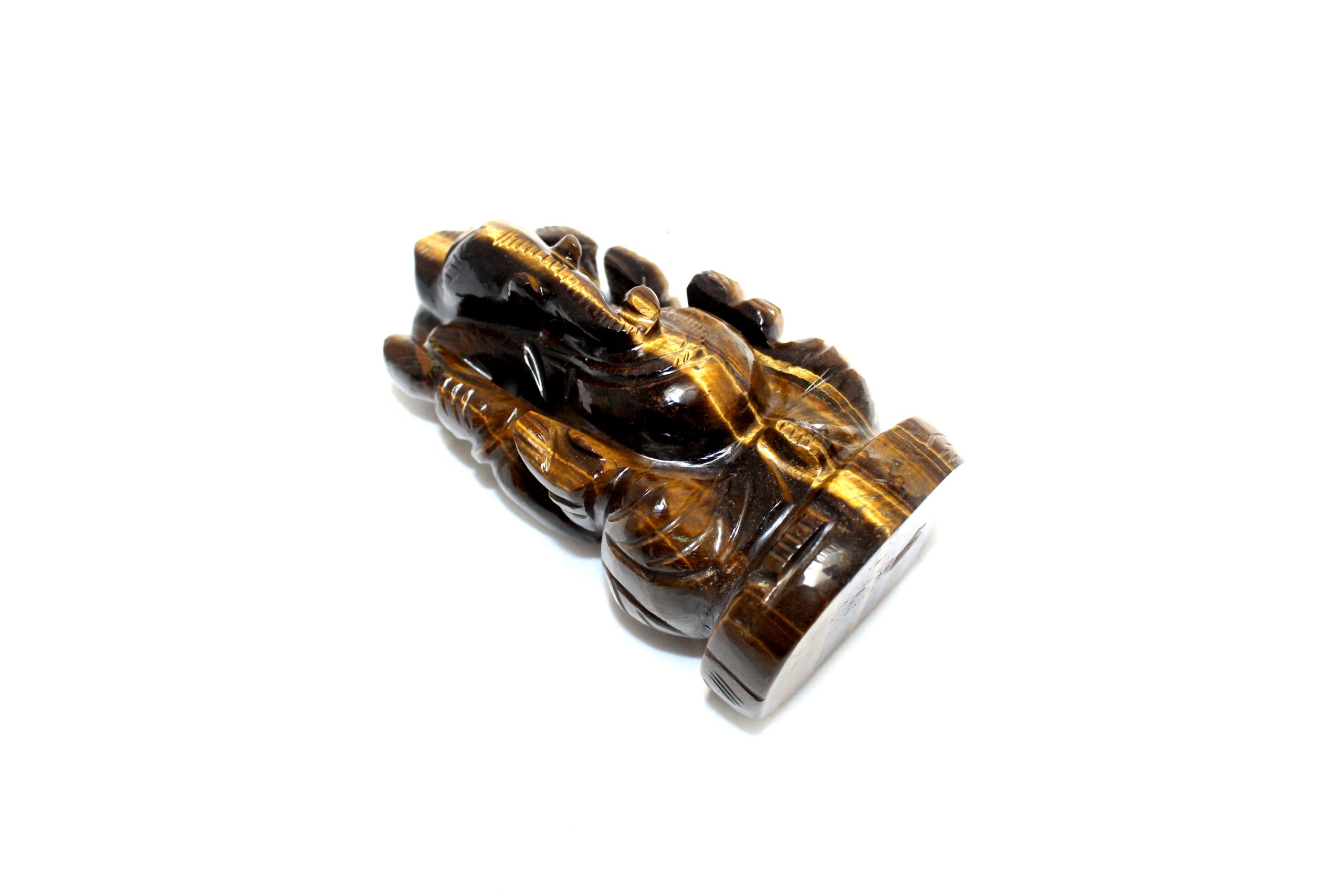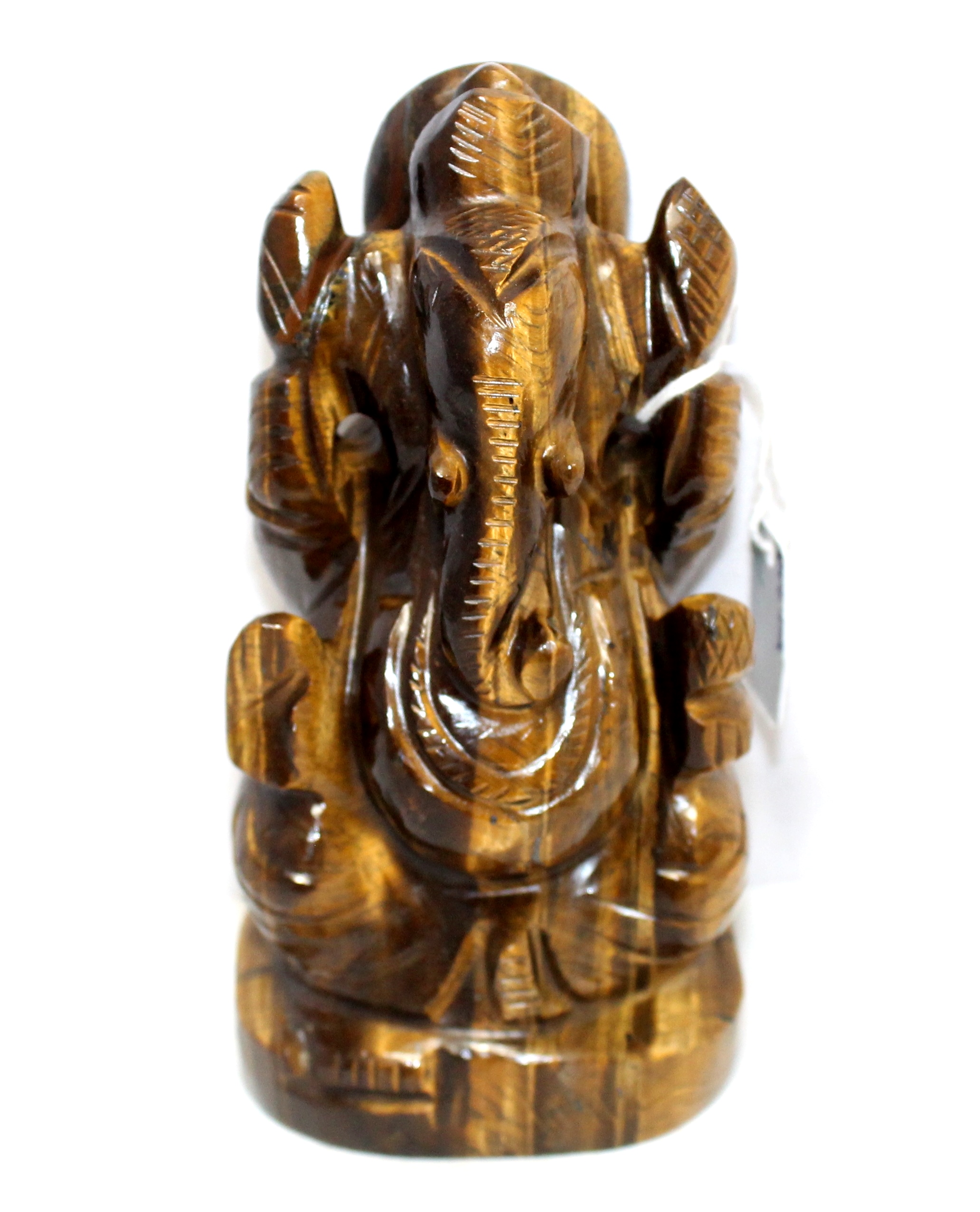 Rajasthan Gems Statue Idol God Ganesha Ganesh Figurine Natural Tigers Eye Stone Handmade G746