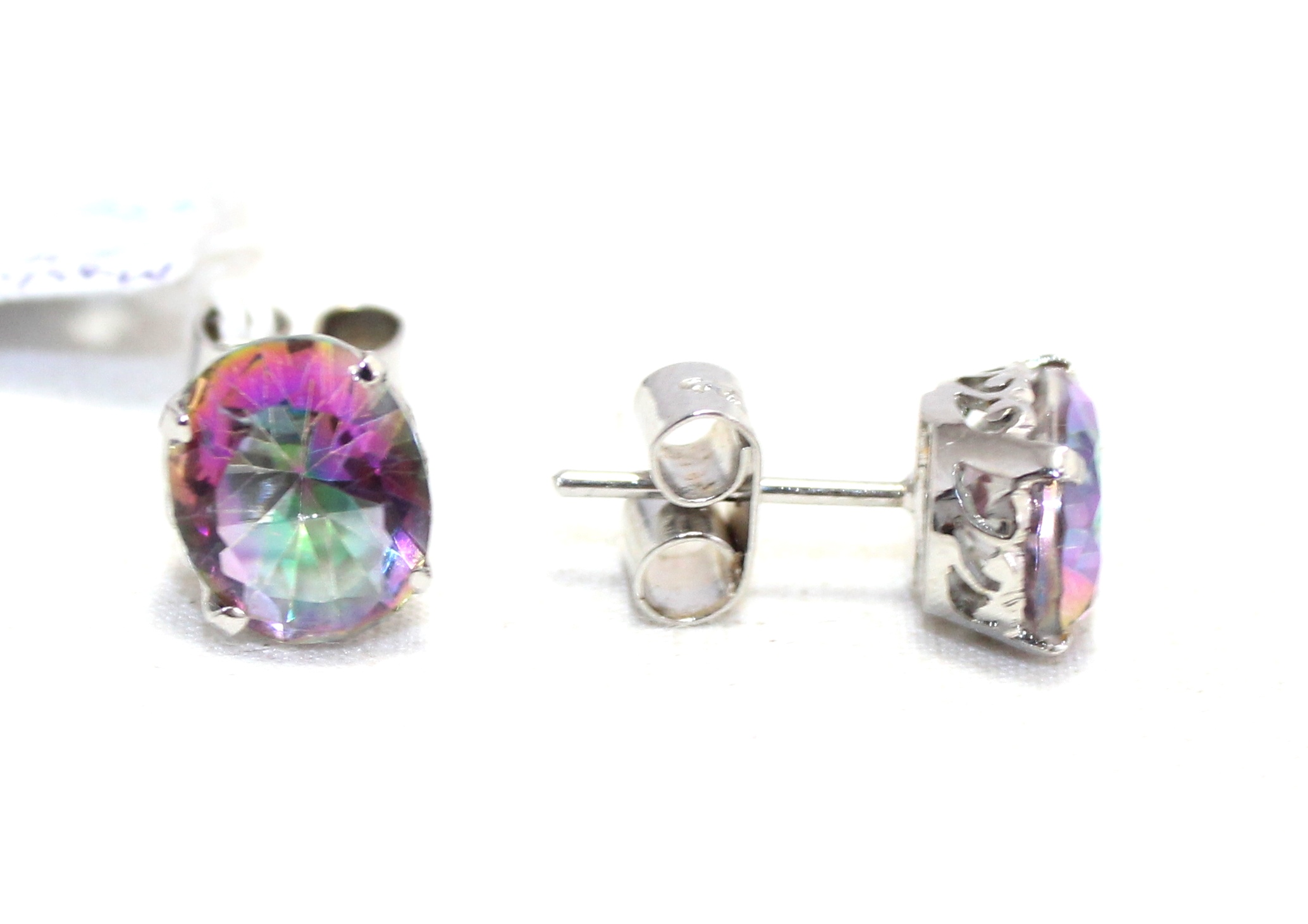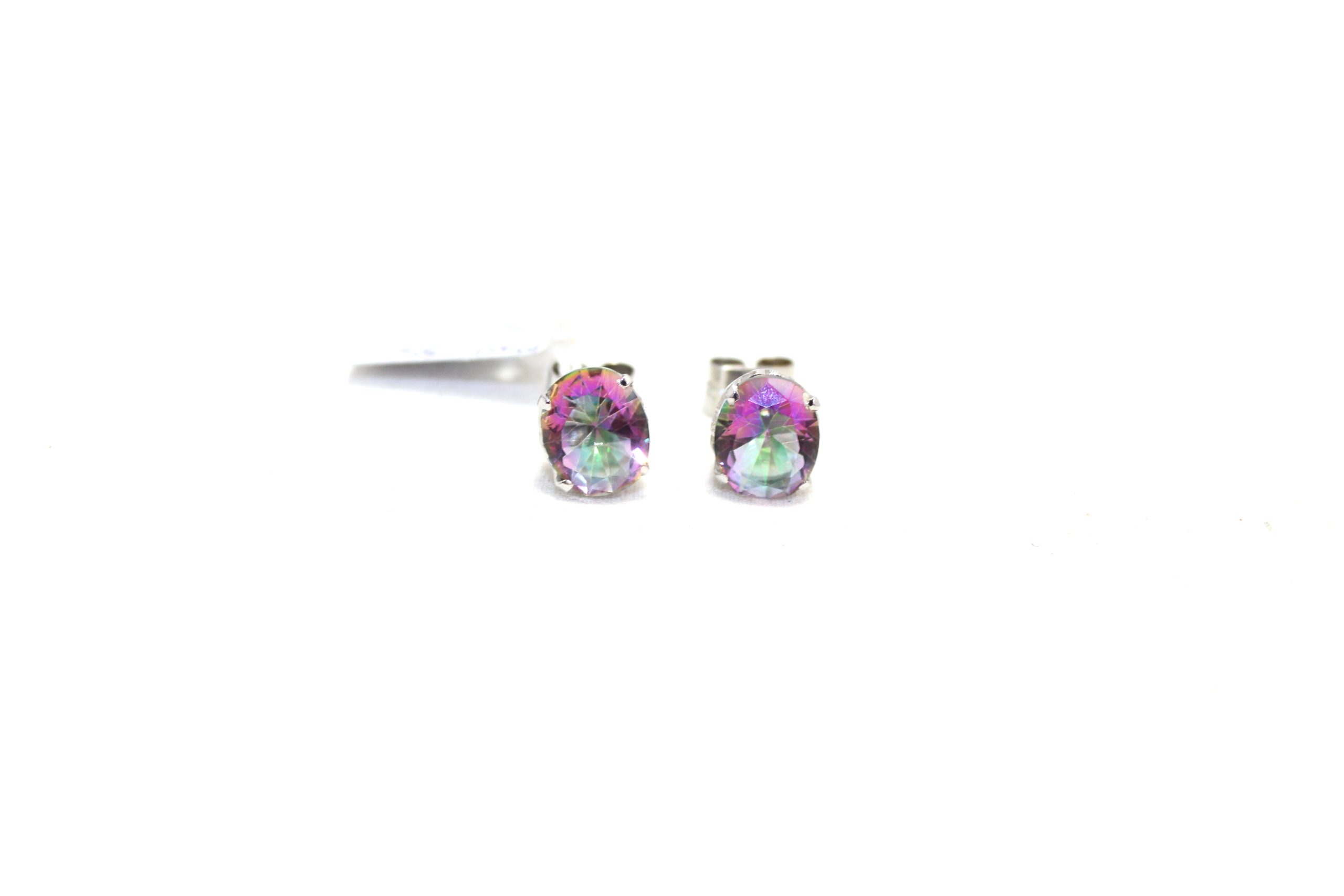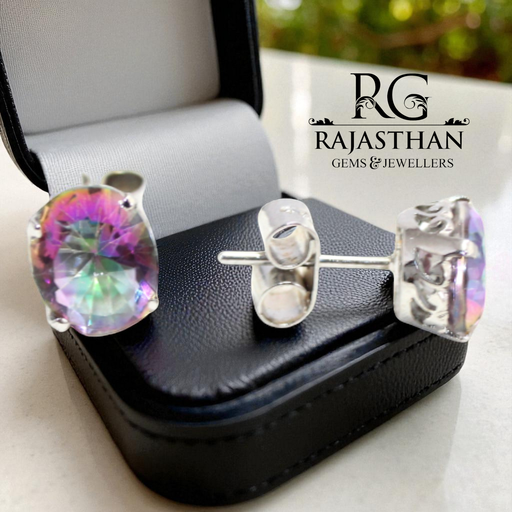 Rajasthan Gems Stud Earrings 925 Sterling Silver Mystic Quartz Gem Stone Women Handmade Gift G507