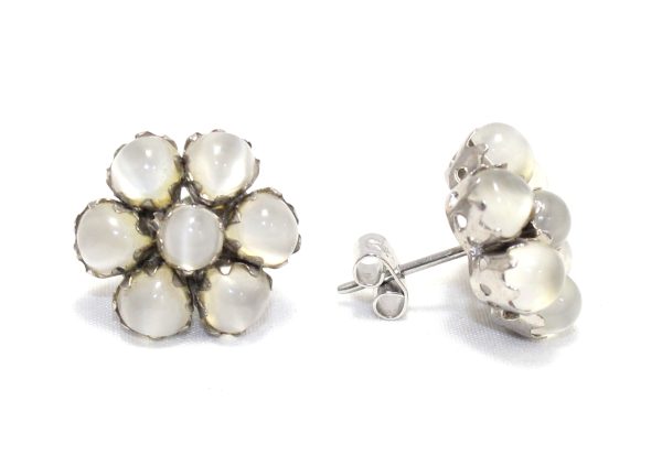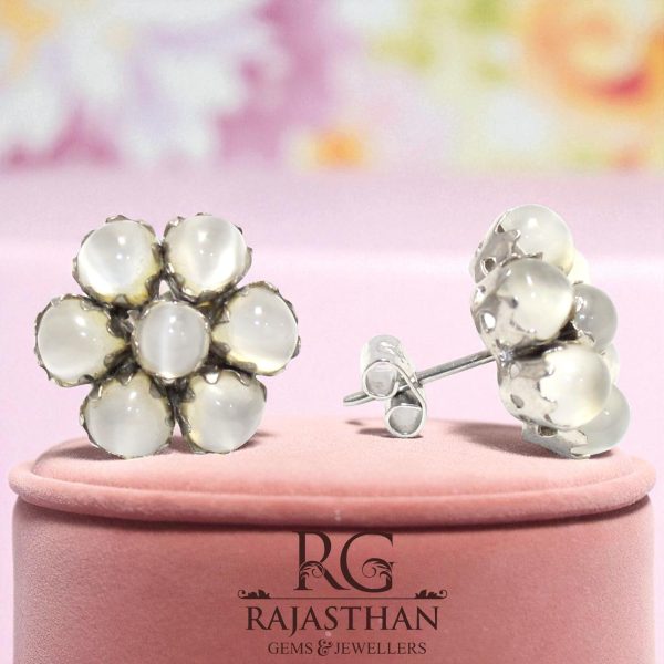Rajasthan Gems Stud Earrings 925 Sterling Silver Natural Moonstone Gem Stone Women Handmade Gift Studs Earring G804
