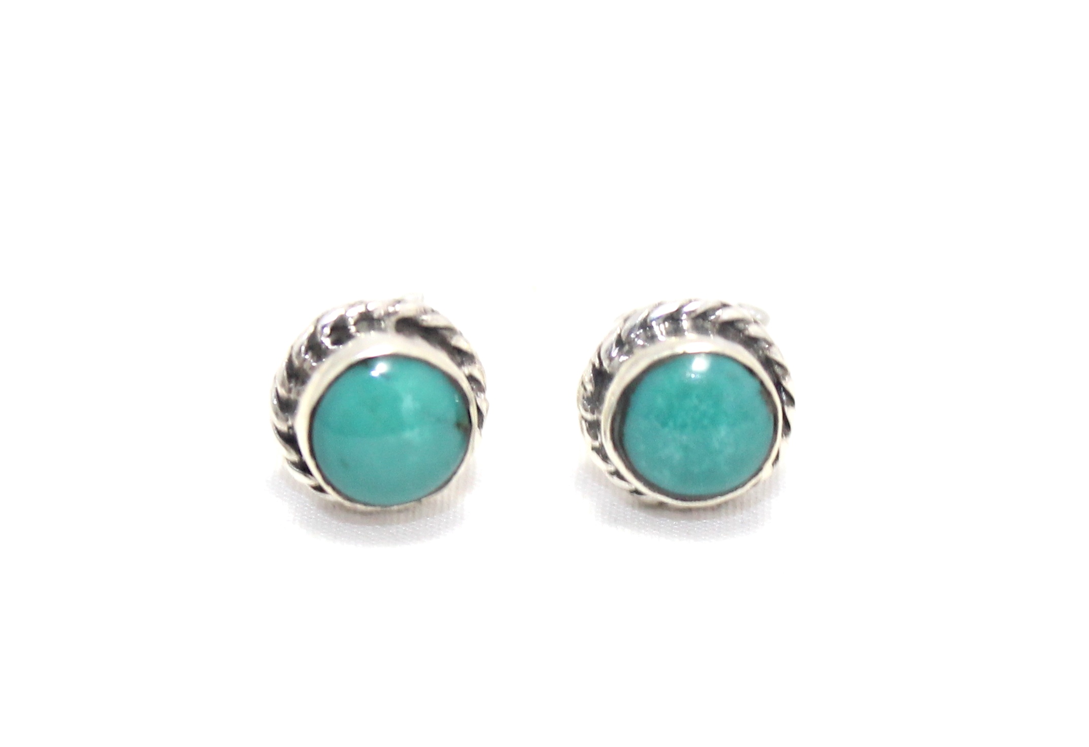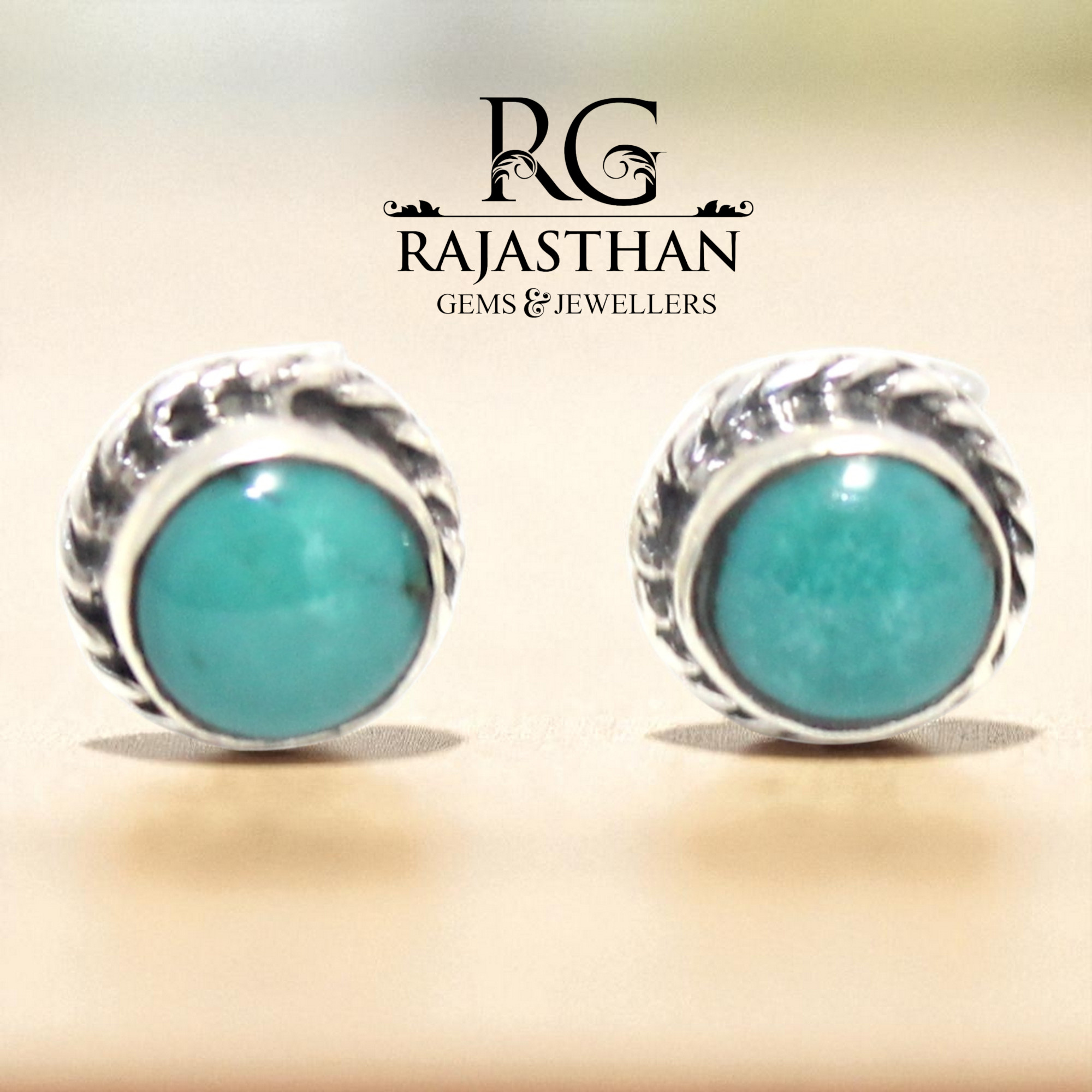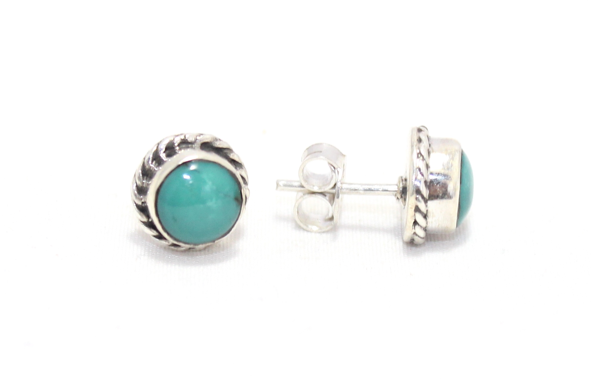 Rajasthan Gems Stud Earrings 925 Sterling Silver Natural Turquoise Gem Stone Women Handmade Gift G753