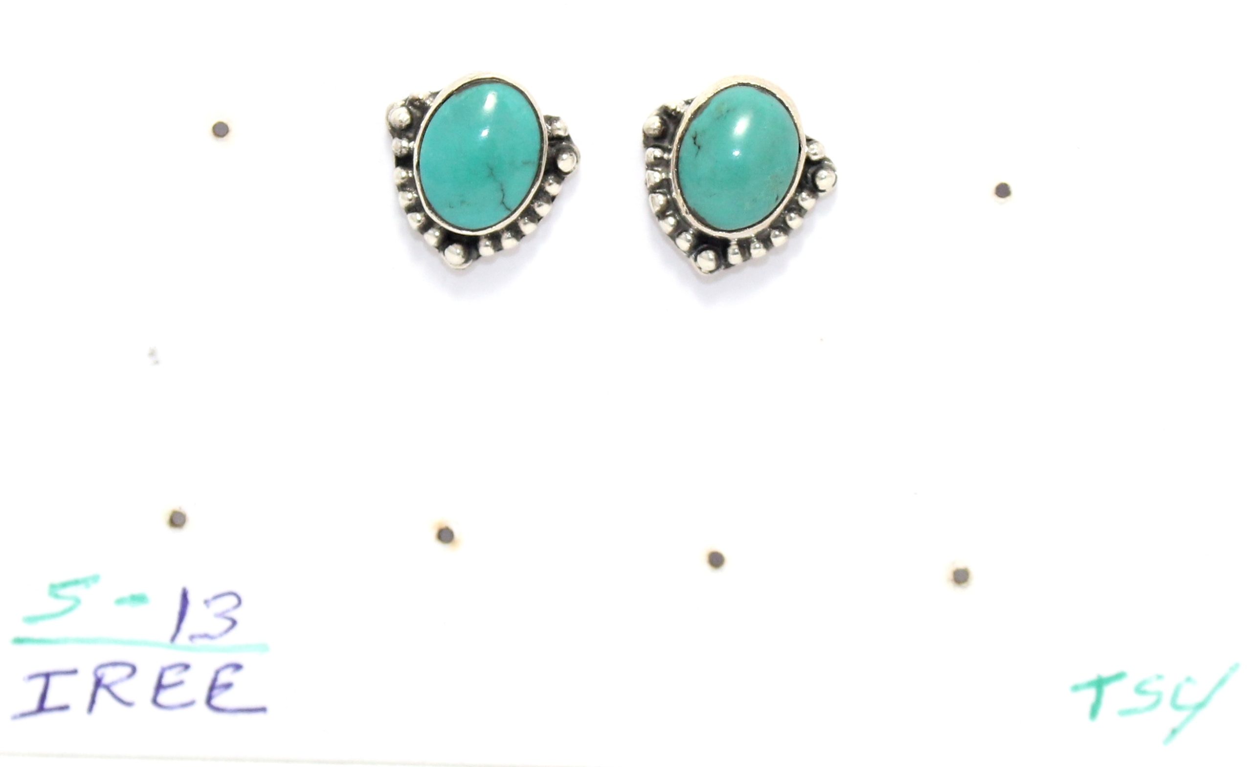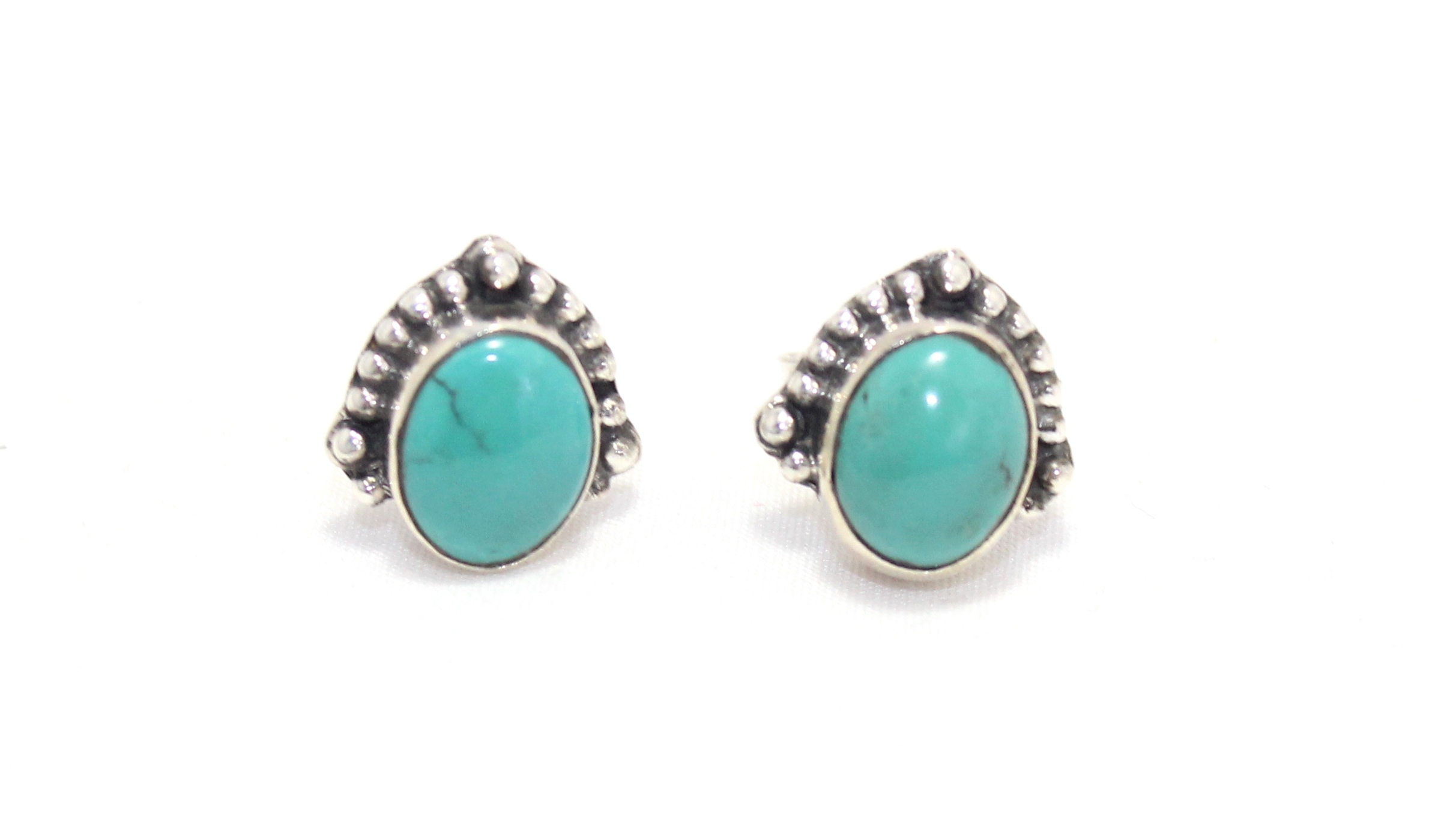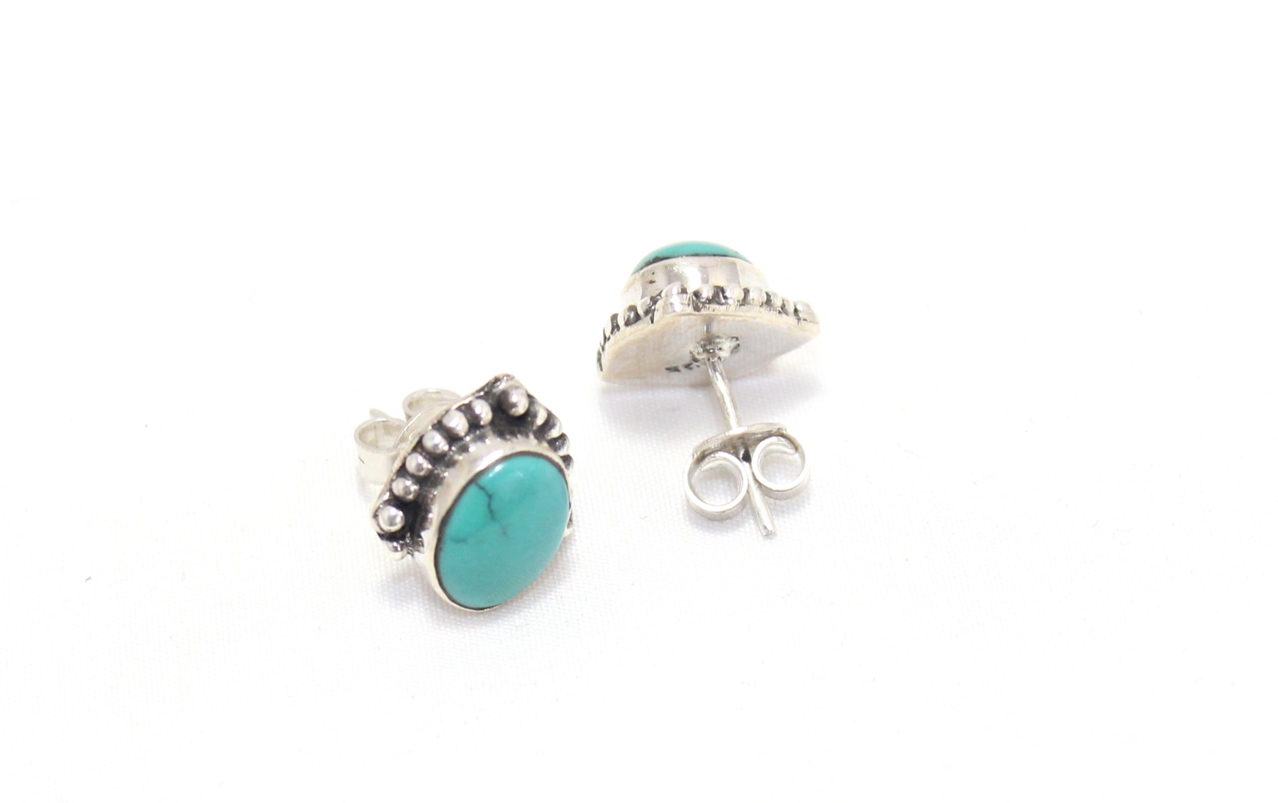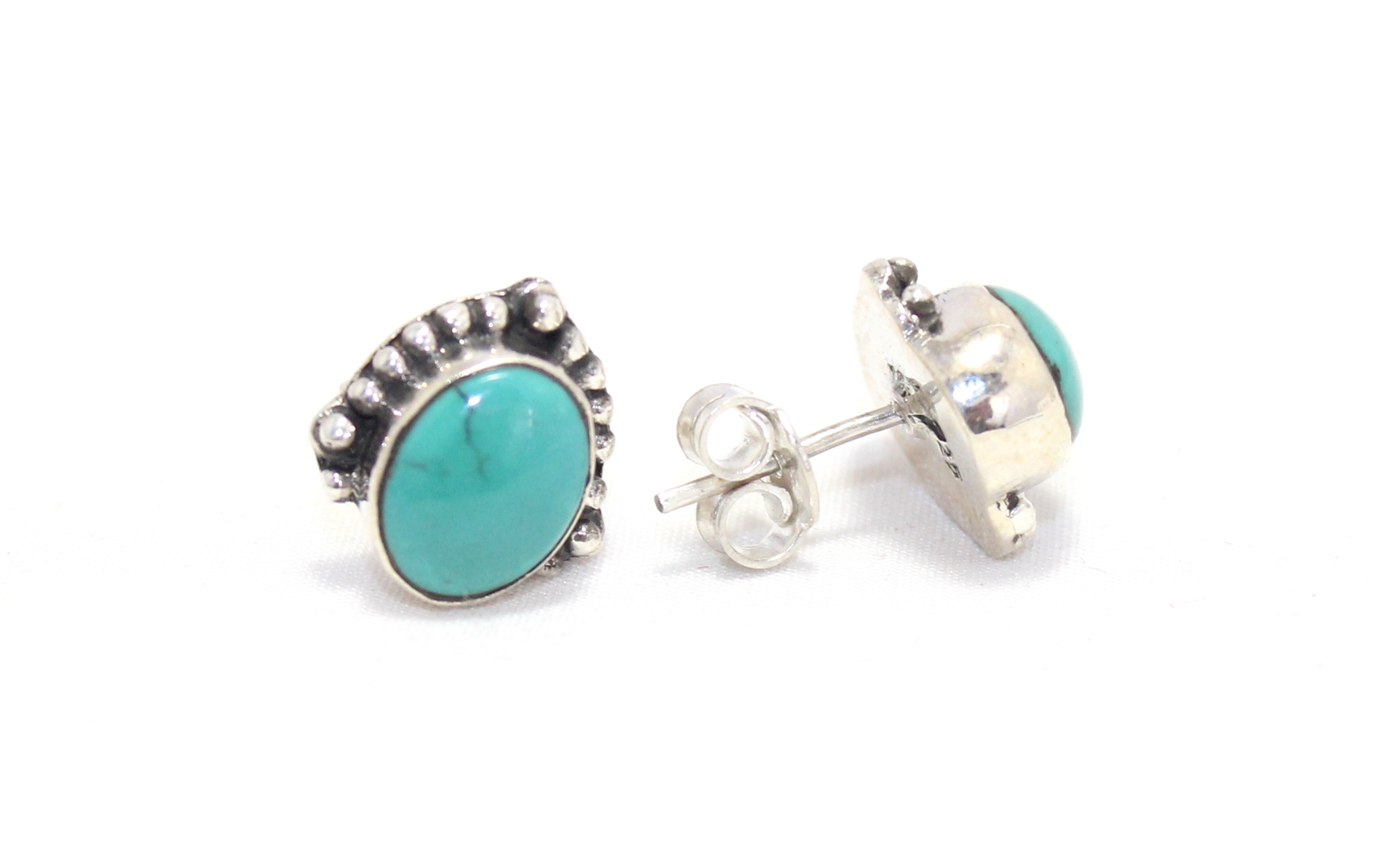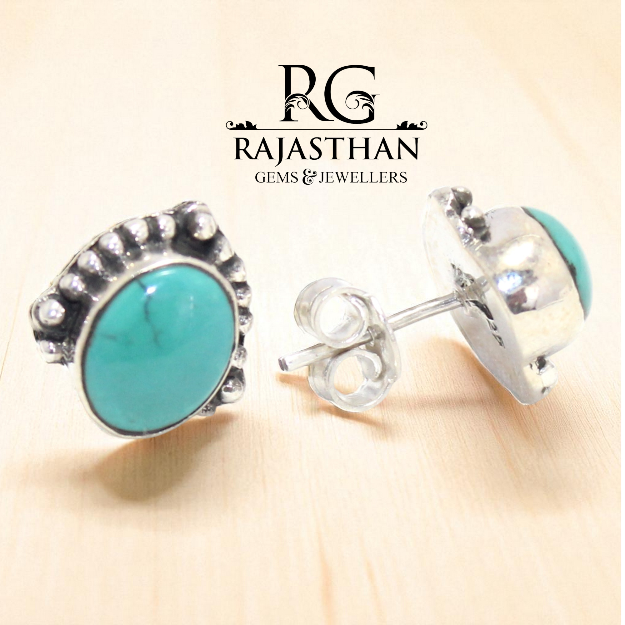 Rajasthan Gems Stud Earrings 925 Sterling Silver Natural Turquoise Gem Stone Women Handmade Gift G755