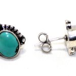 Rajasthan Gems Stud Earrings Tops 925 Sterling Silver Natural Turquoise Gem Stone Women Handmade Gift H641