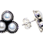 Rajasthan Gems Stud Earrings Tops 925 Sterling Silver Women Freshwater Pearl Gem Stone Handmade Gift H639