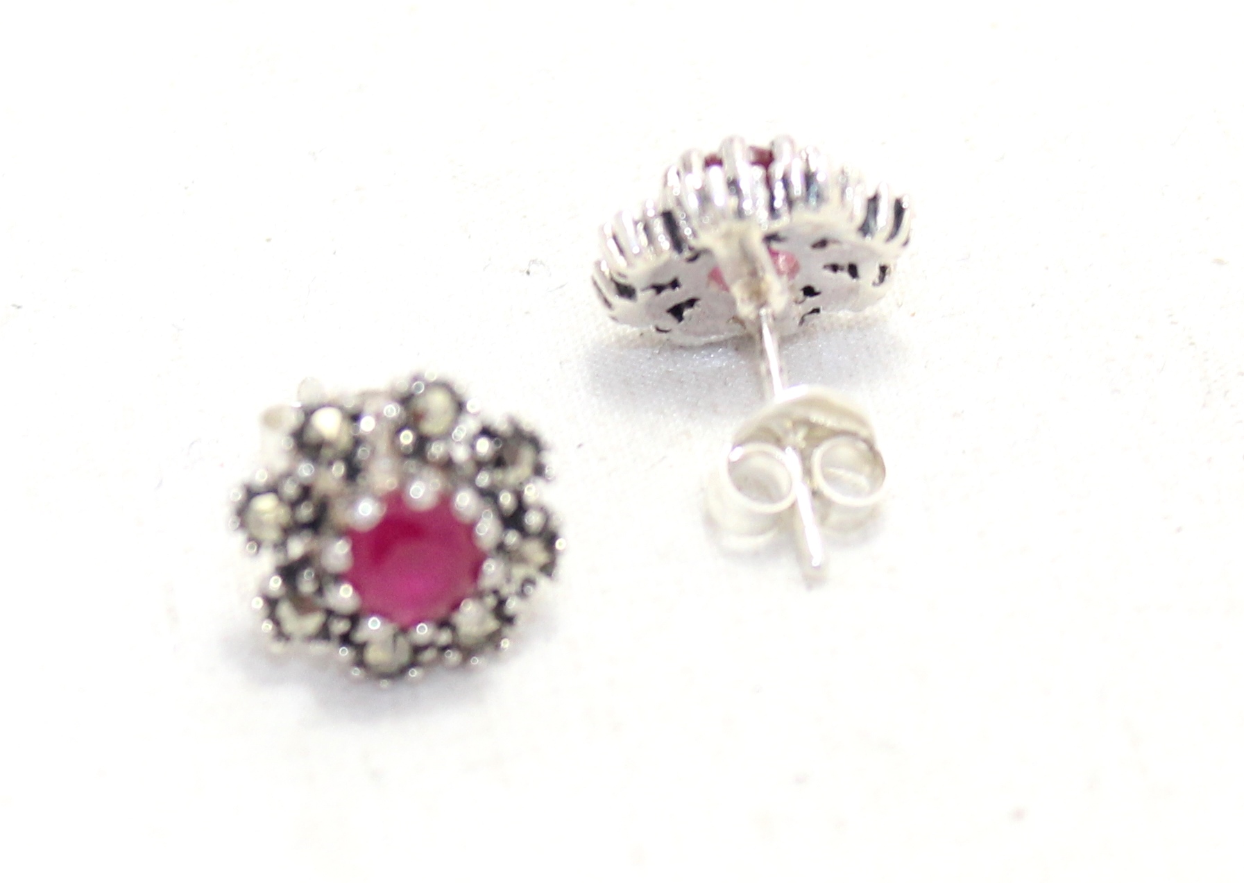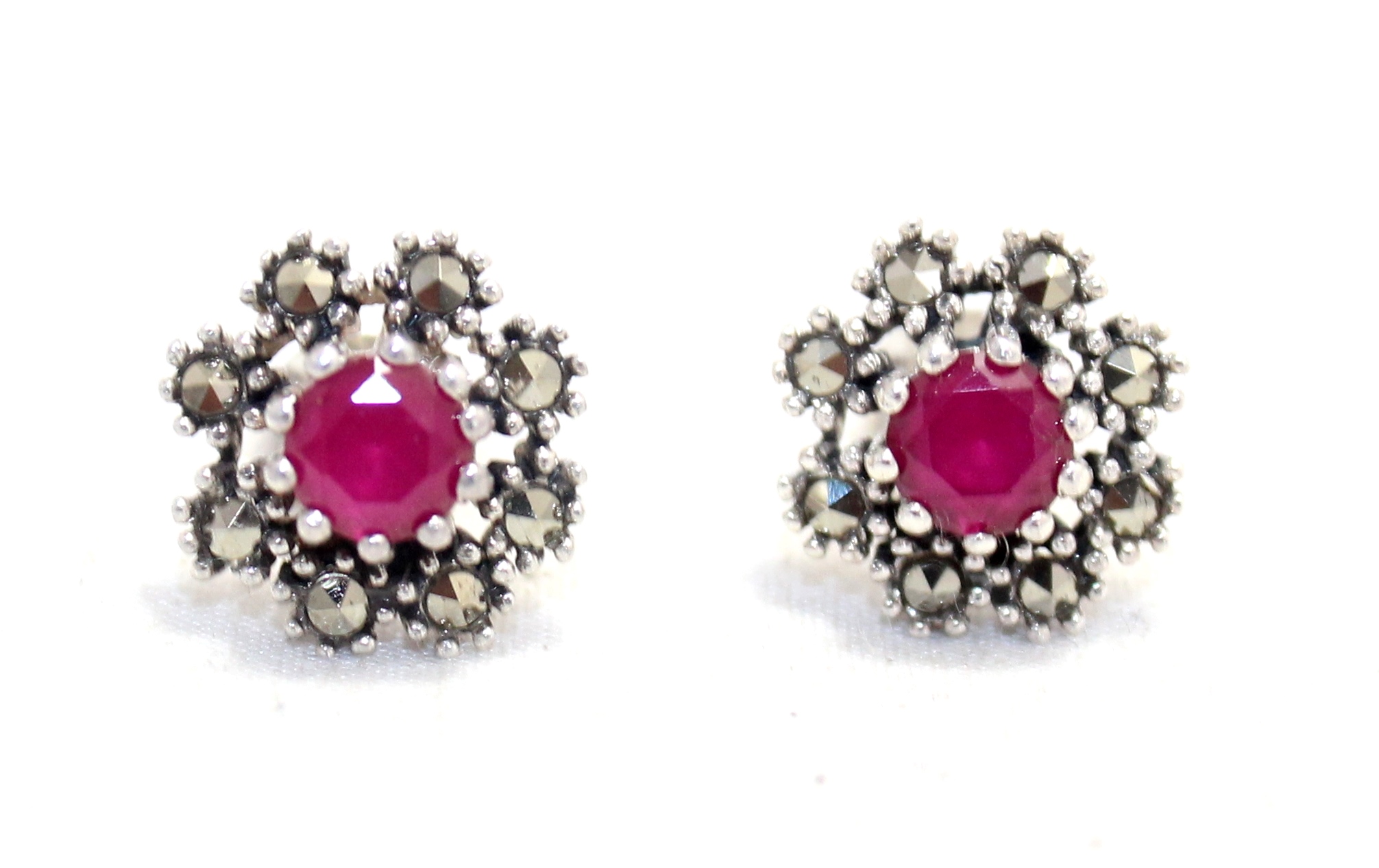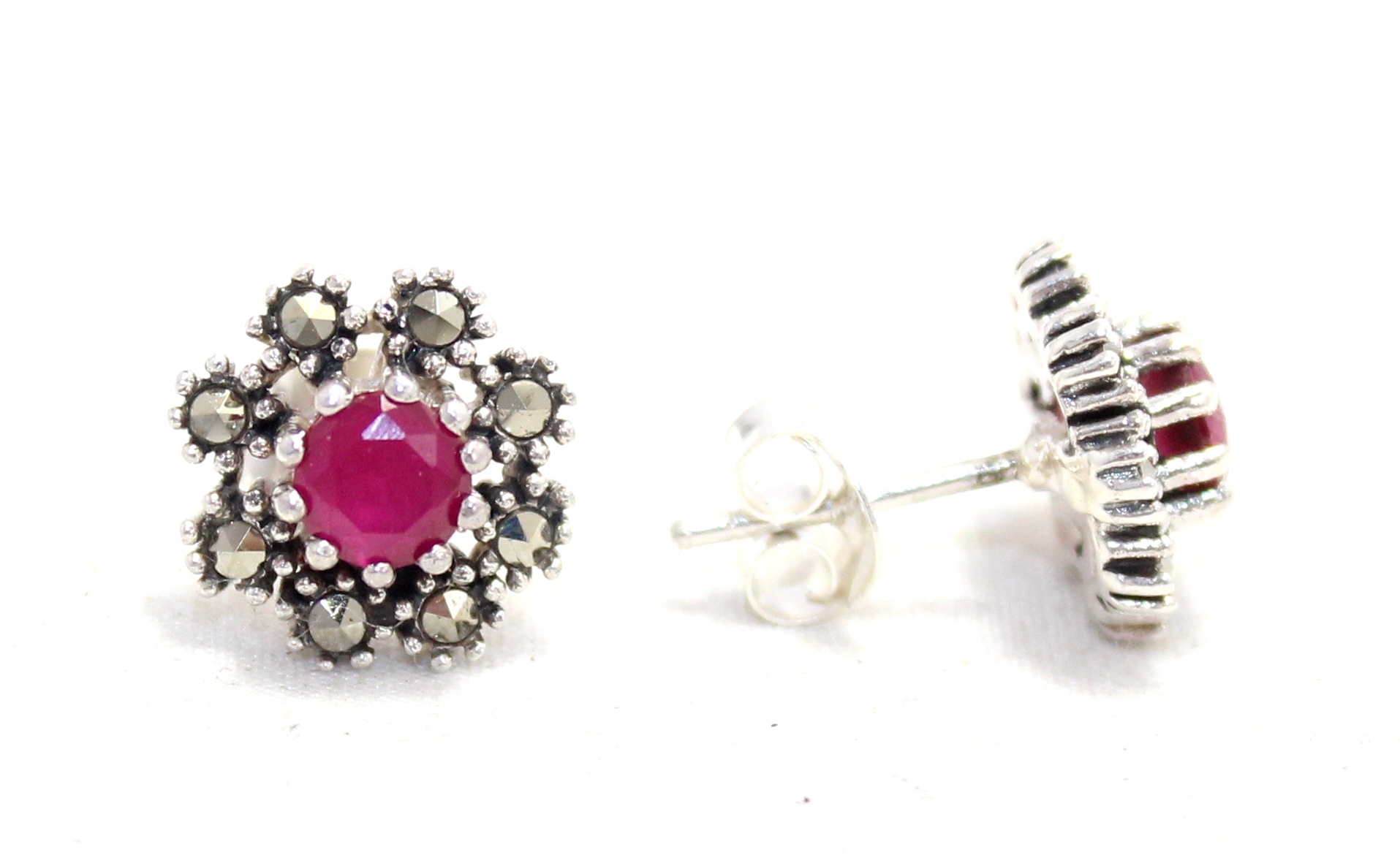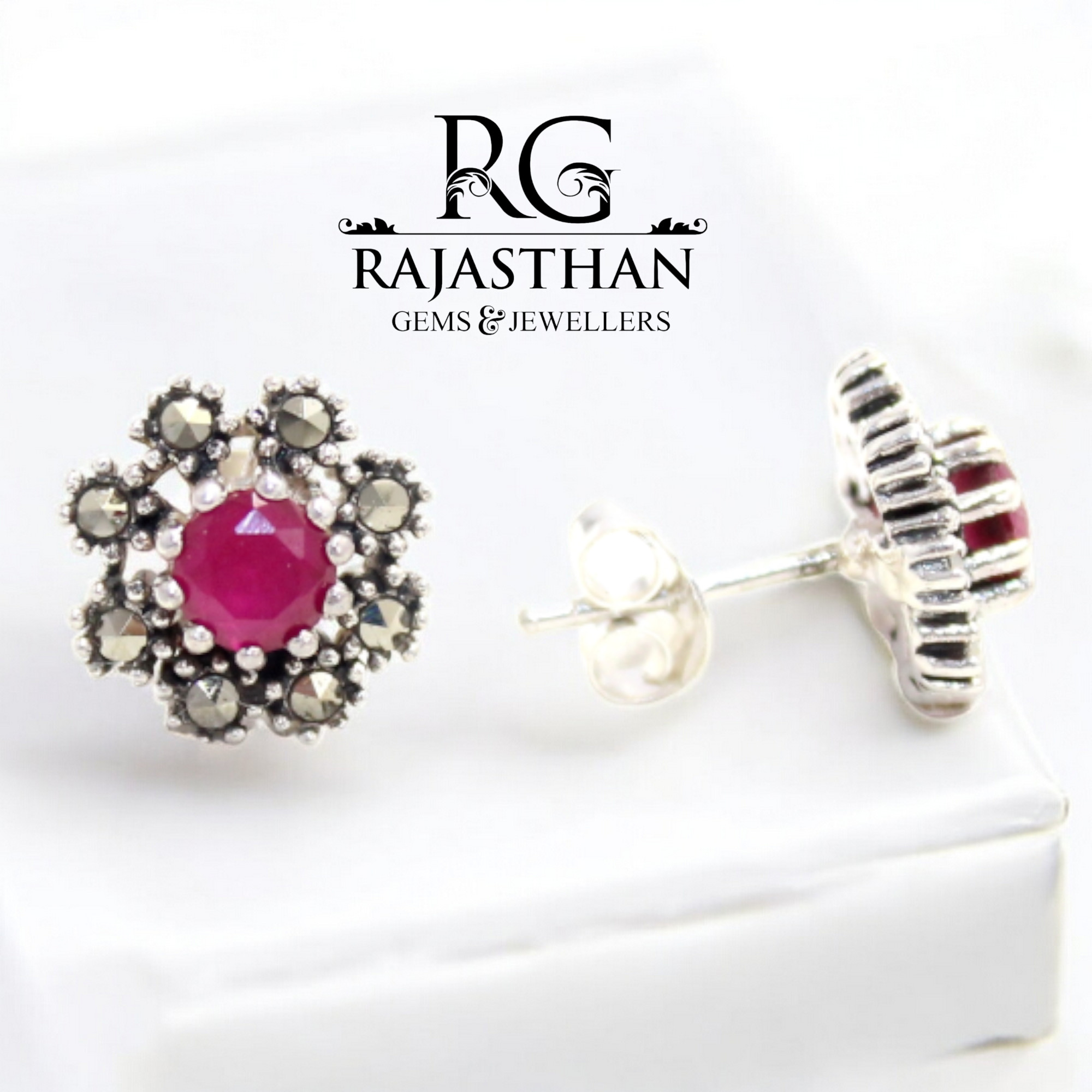 Rajasthan Gems Stud Earrings Tops 925 Sterling Silver Women Marcasite & Onyx Gem Stone Handmade Gift G581