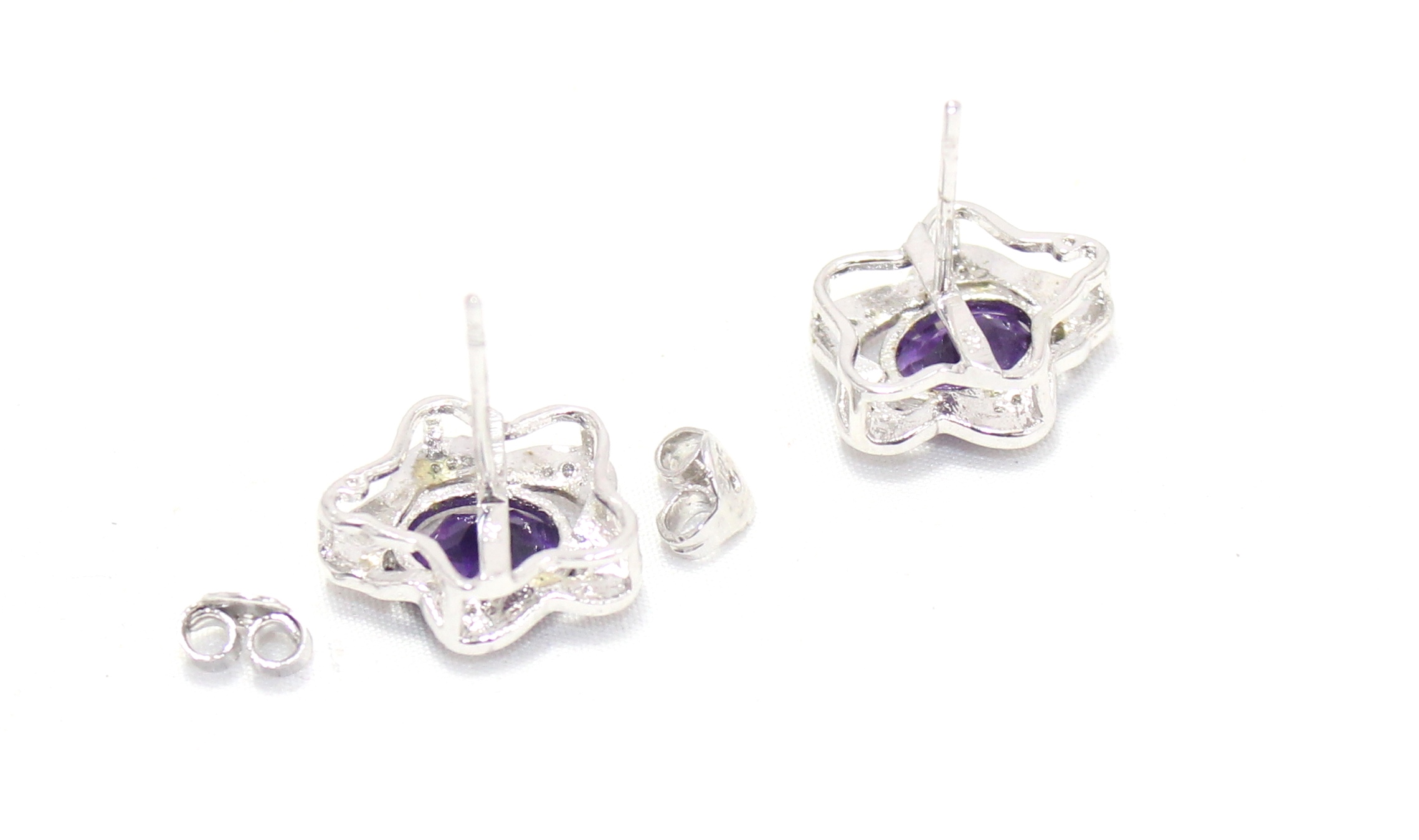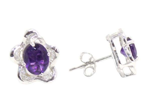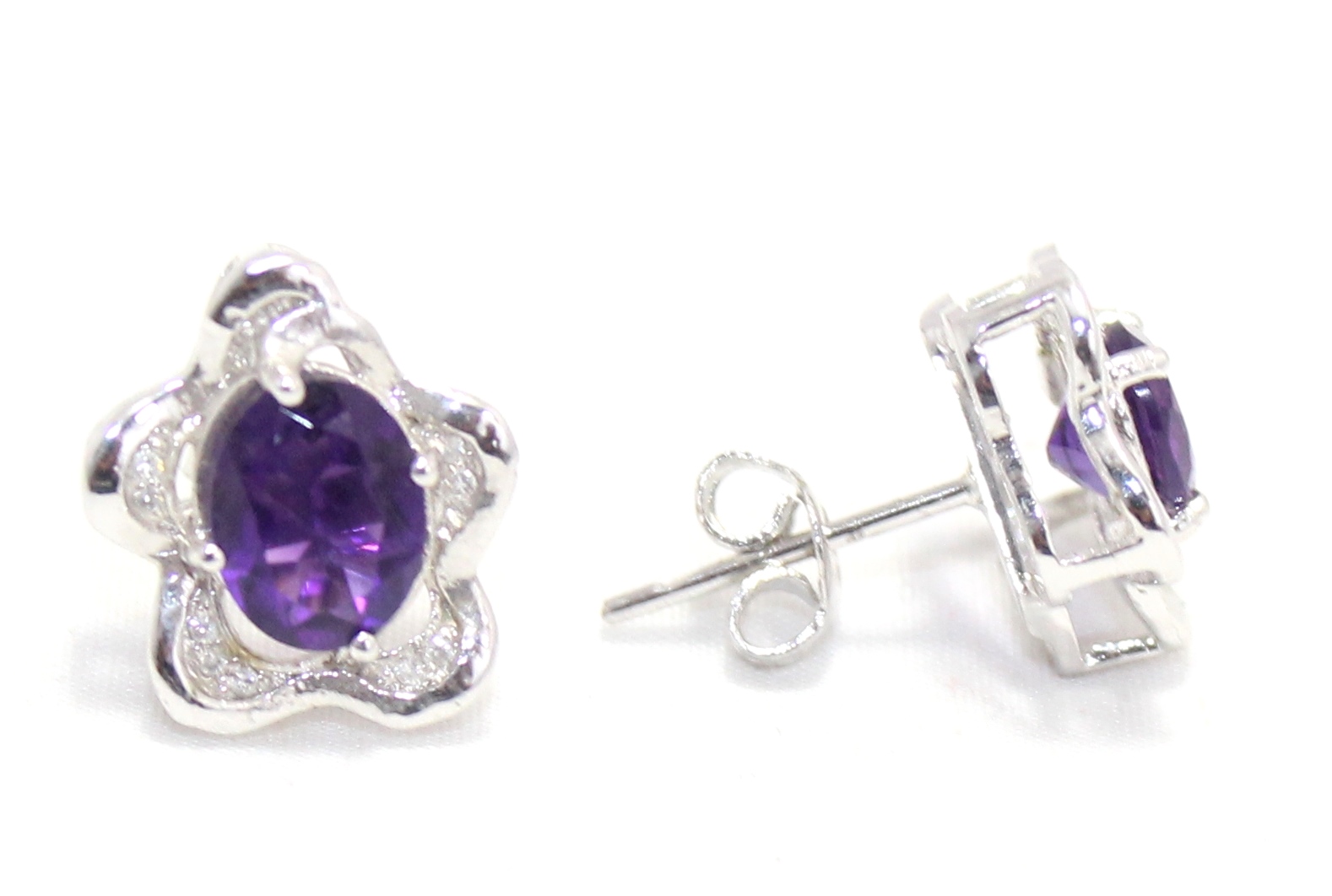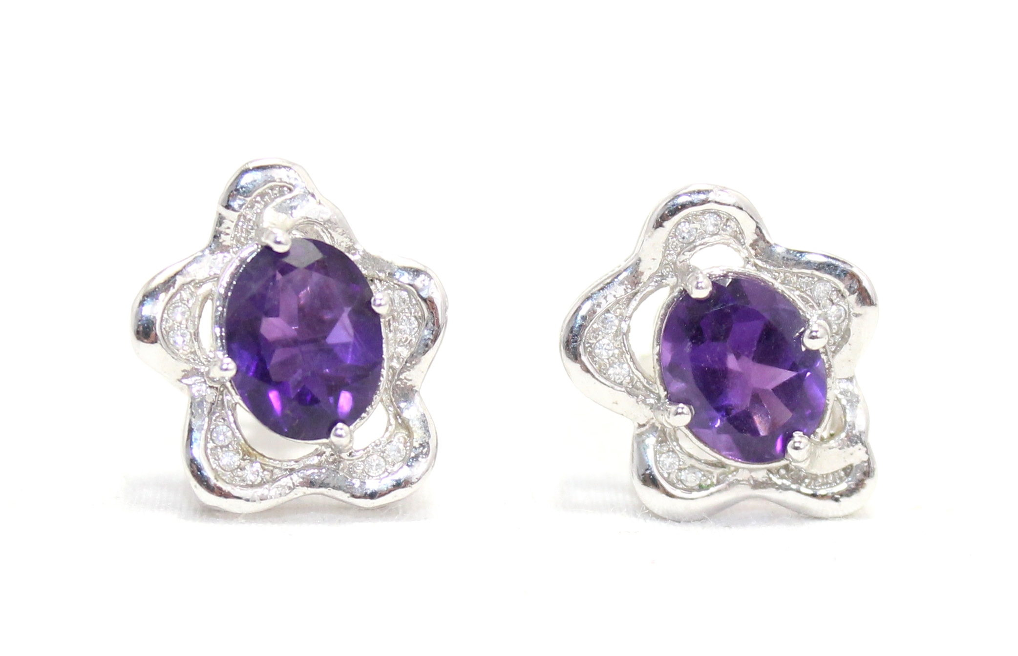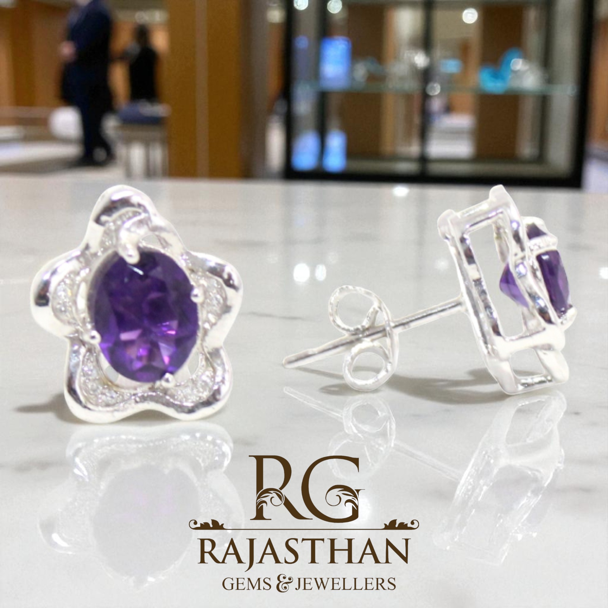 Home » Shop » Rajasthan Gems Stud Tops Earrings 925 Sterling Silver Natural Amethyst Gemstone & Cubic Zirconia CZ Stone Women Handmade Gift Studs Earring G810