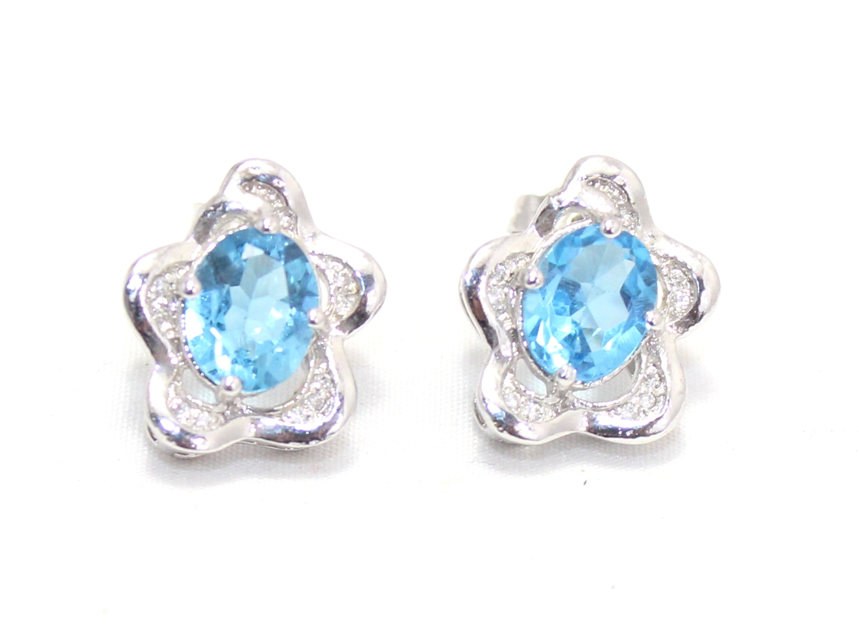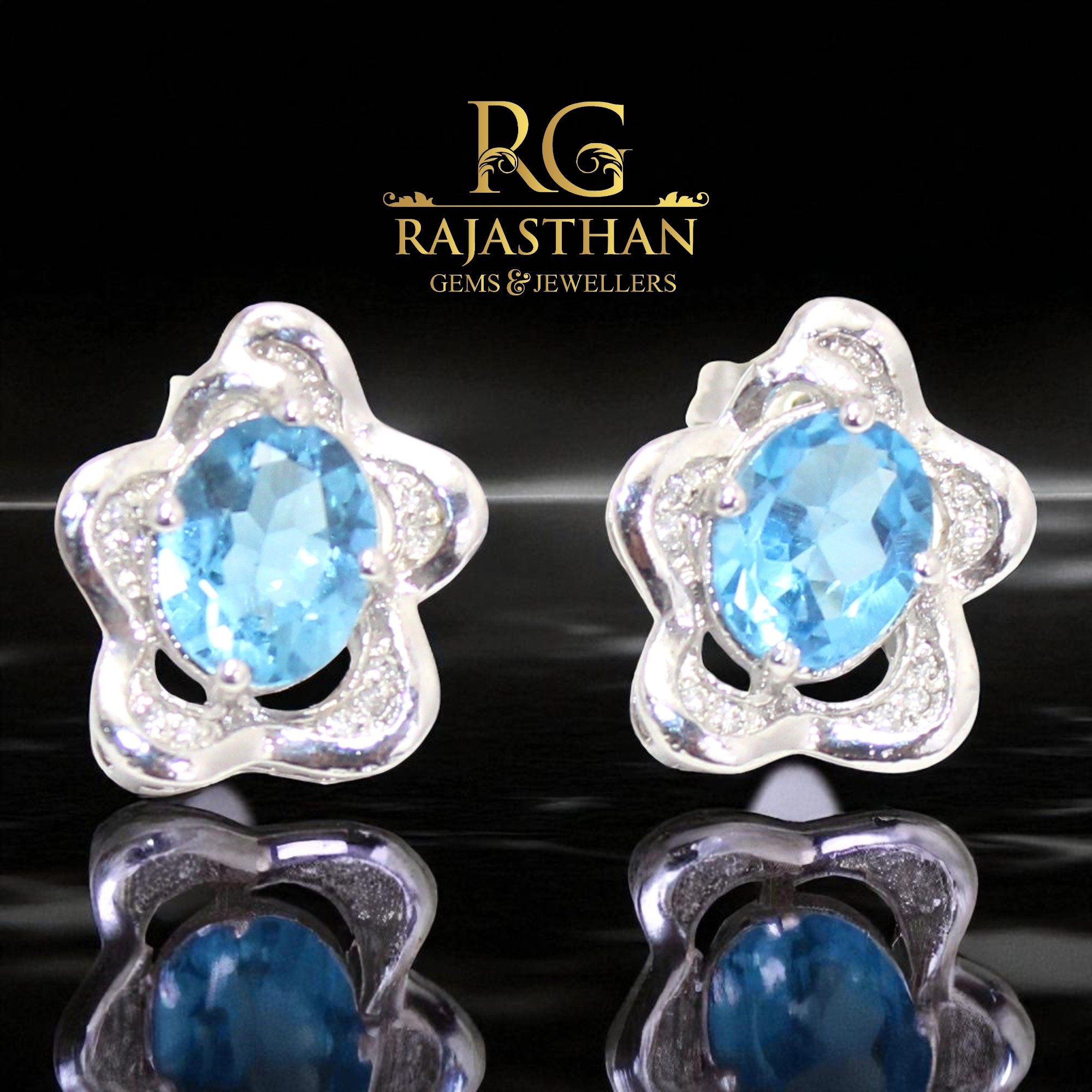 Home » Shop » Rajasthan Gems Stud Tops Earrings 925 Sterling Silver Natural Topaz Gemstone & Cubic Zirconia CZ Stone Women Handmade Gift Earring G808