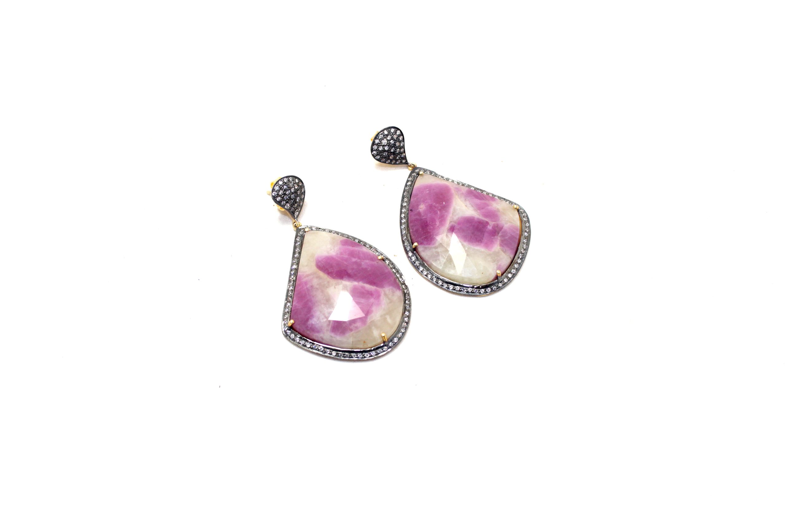 Rajasthan Gems Victorian Jewellery Earrings 925 Sterling Silver Gold Rhodium Designer Natural Sapphire Gem Stone & Cubic Zirconia CZ Handmade Gift Women H739
