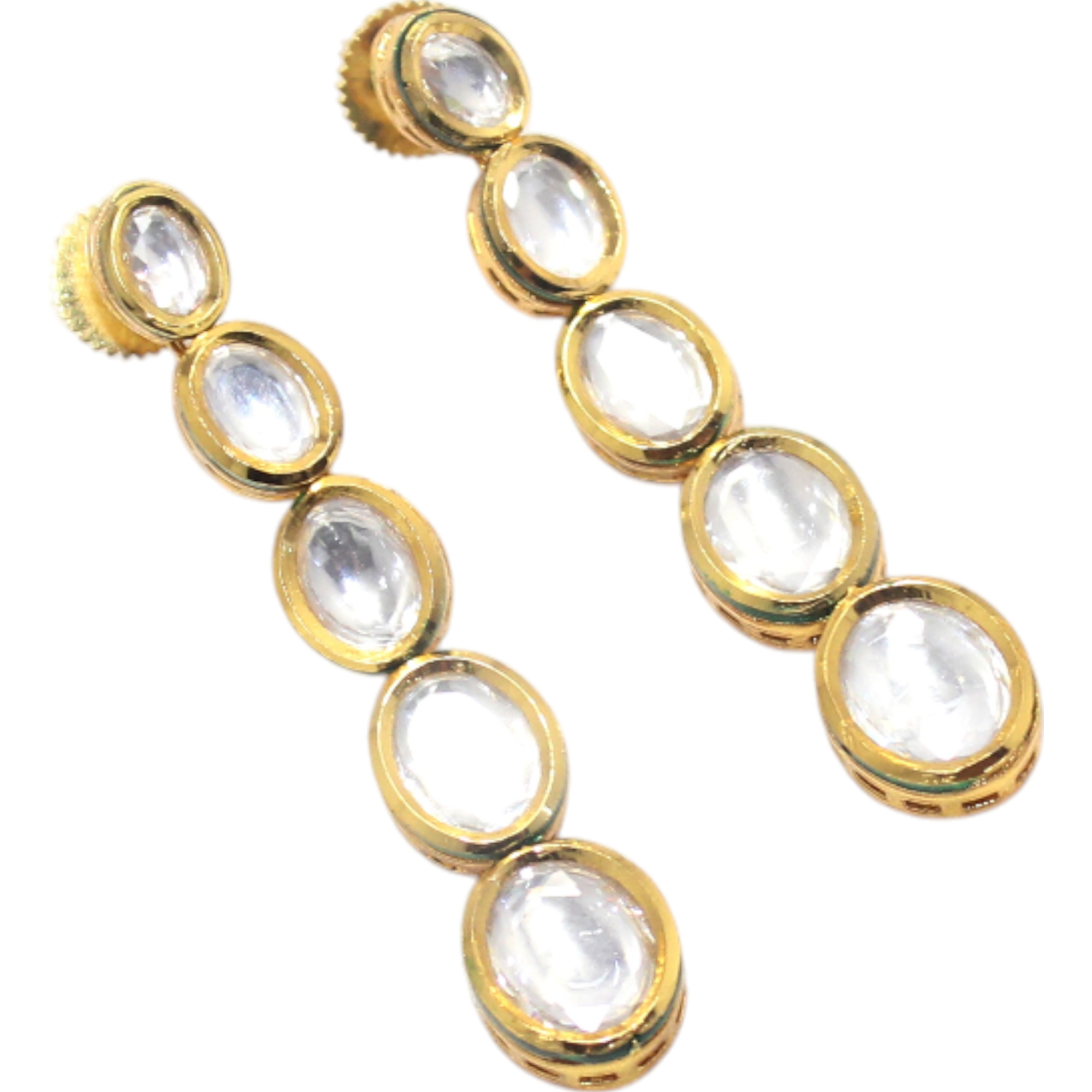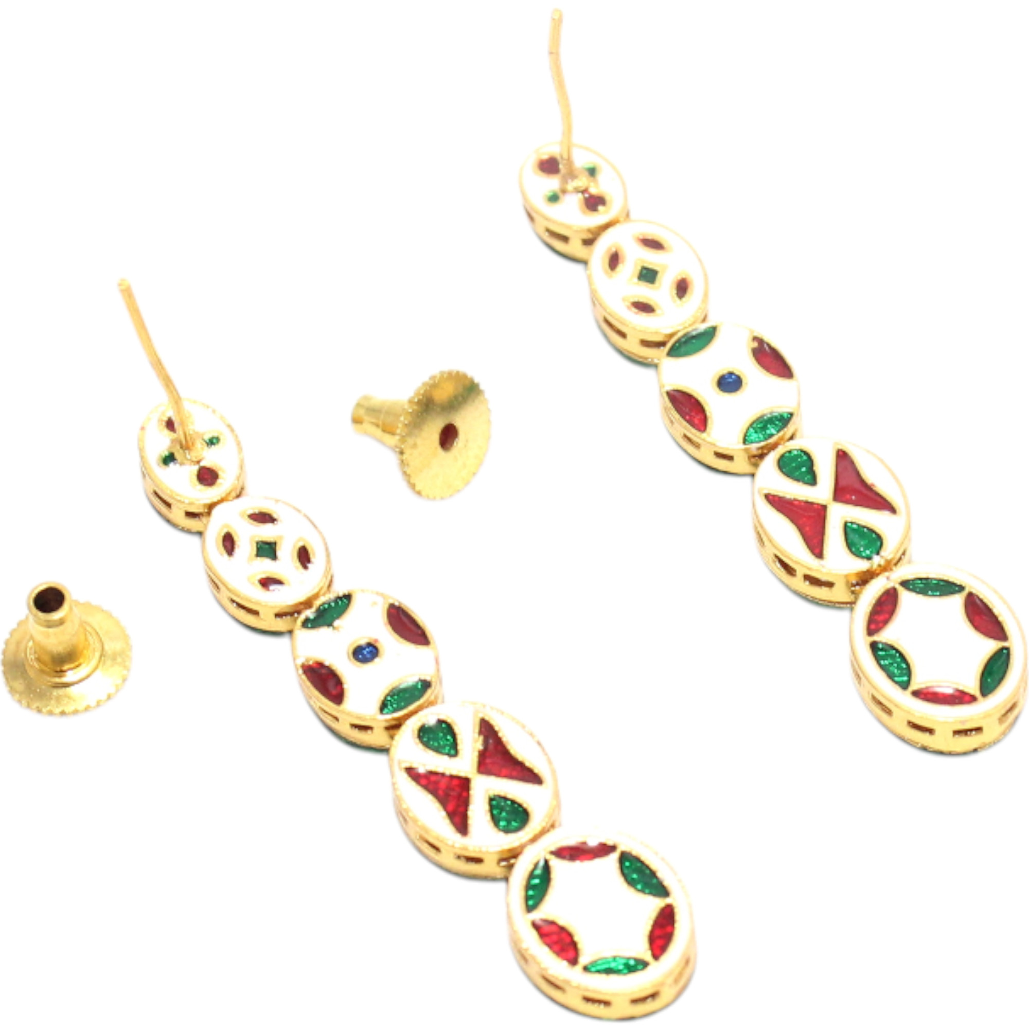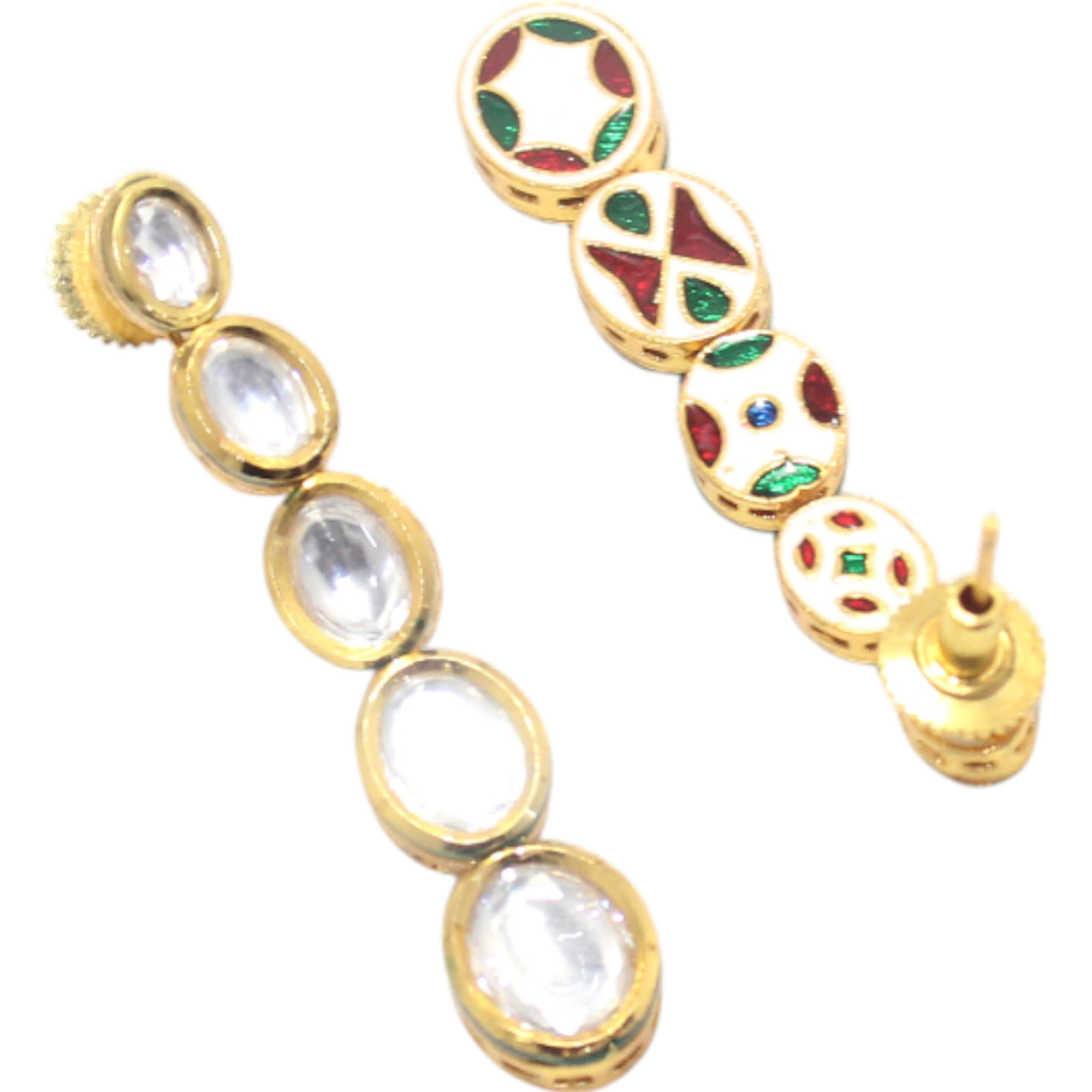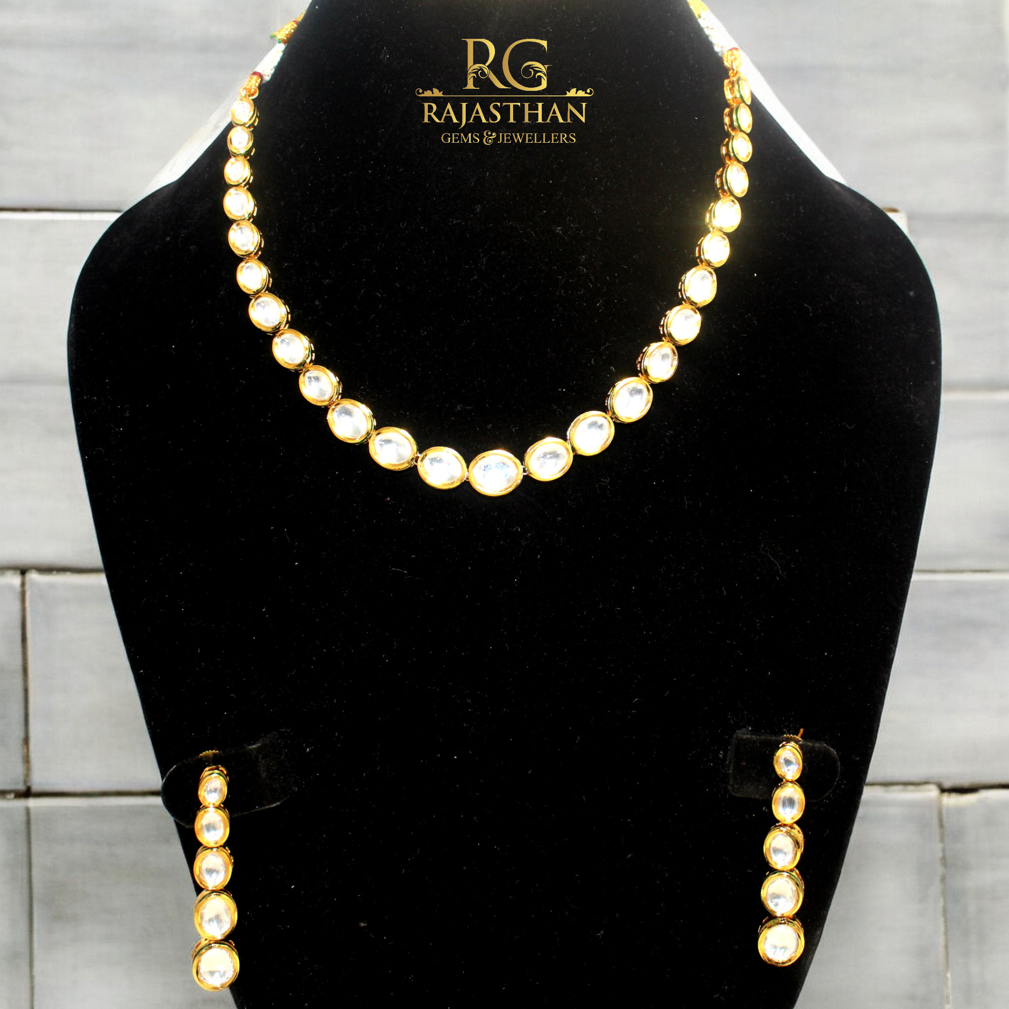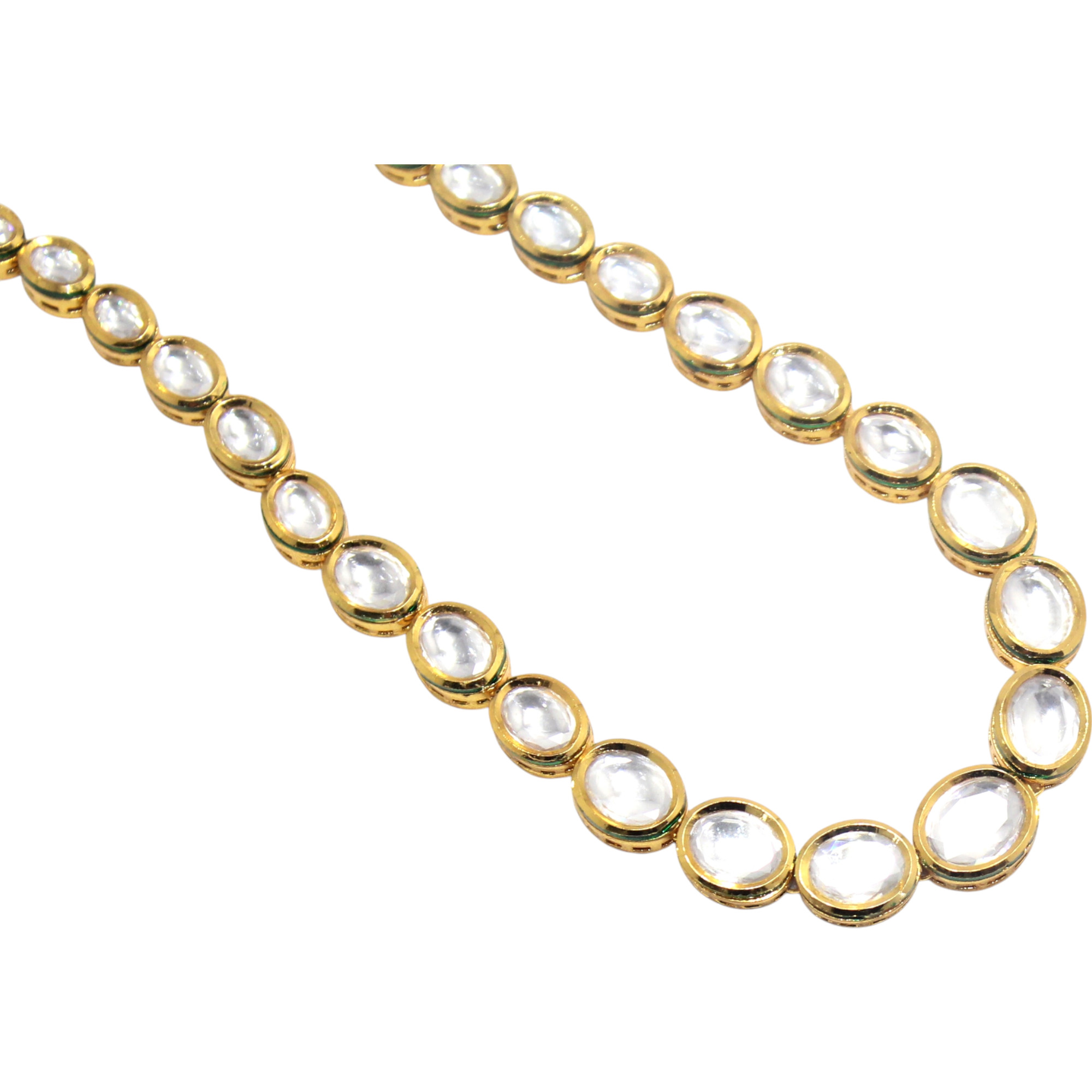 Rajasthan Gems Wedding Jadau Necklace Earrings Set Alloy Polki Cubic Zirconia CZ Stone Enamel Meena Gold Rhodium Adjustable Women Handmade India Gift F198