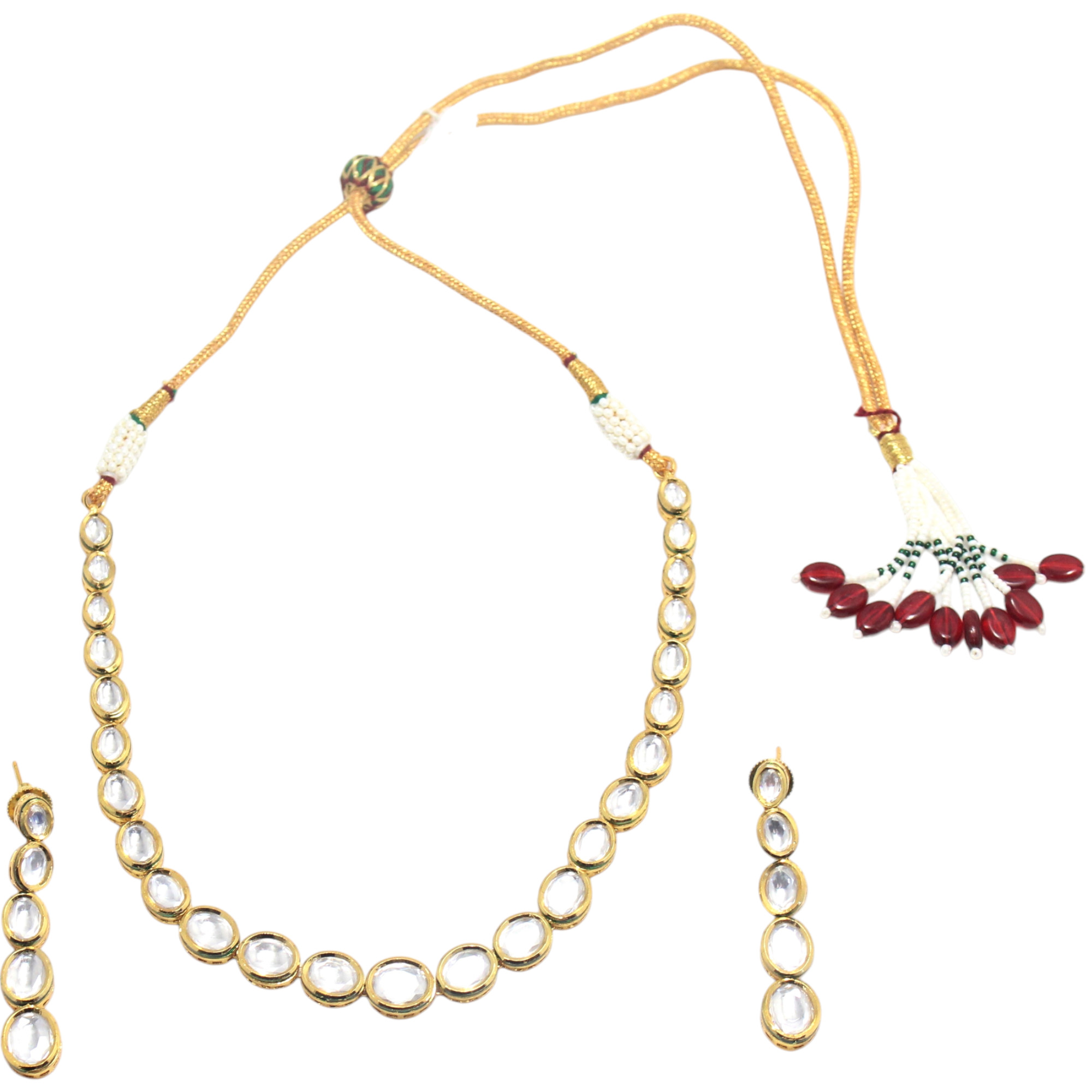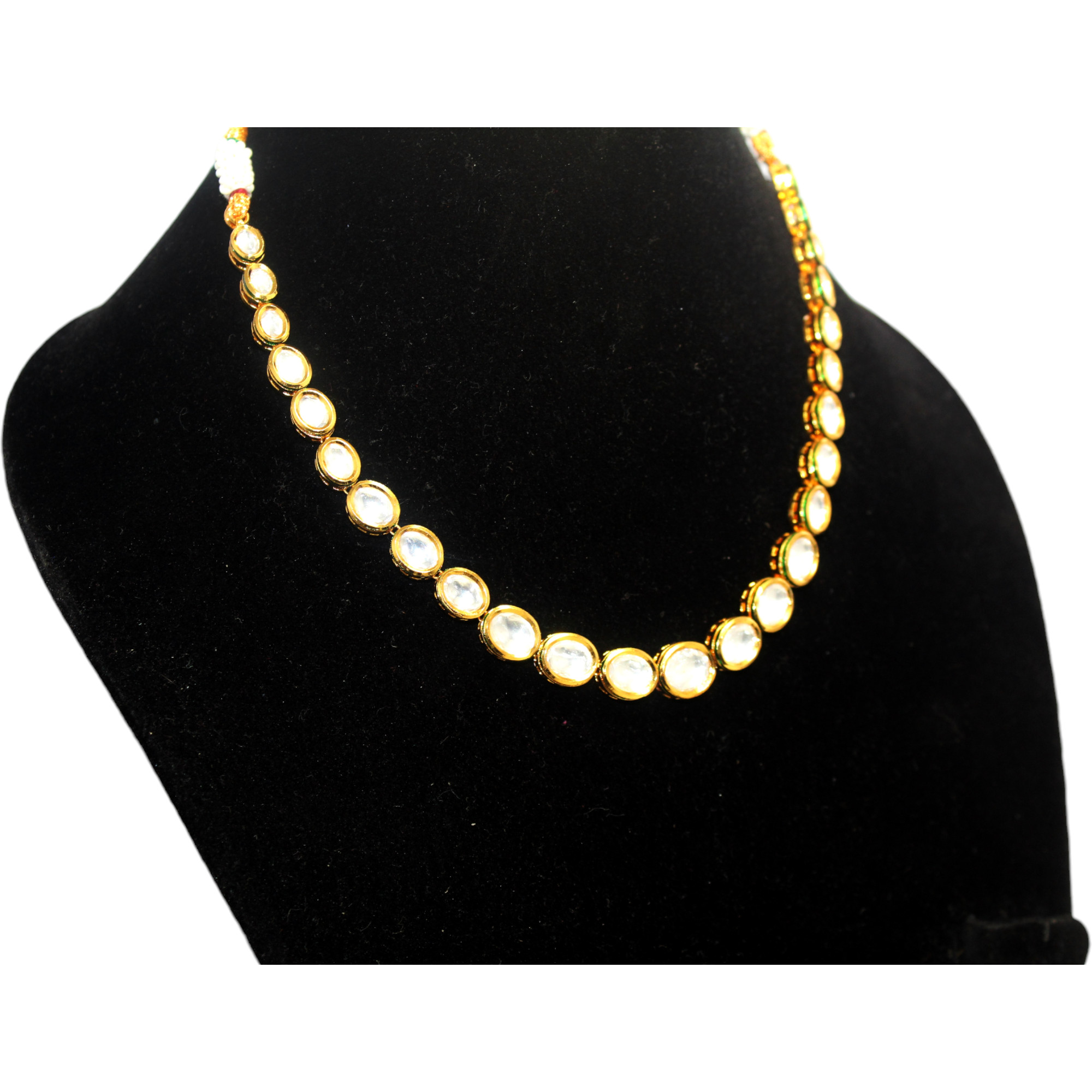 Home » Shop » Rajasthan Gems Wedding Jadau Necklace Earrings Set Alloy Polki Cubic Zirconia CZ Stone Enamel Meena Gold Rhodium Adjustable Women Handmade India Gift F198