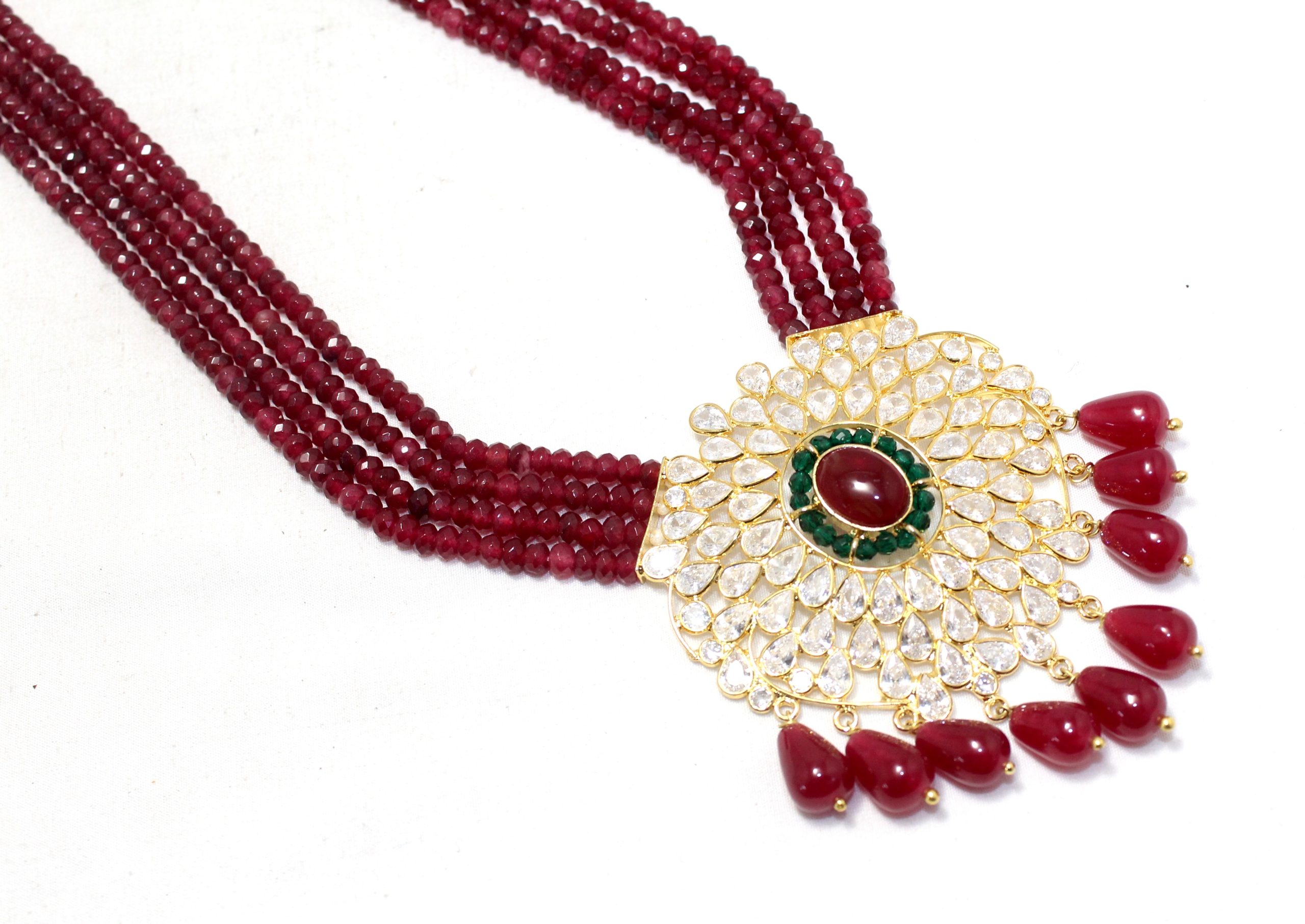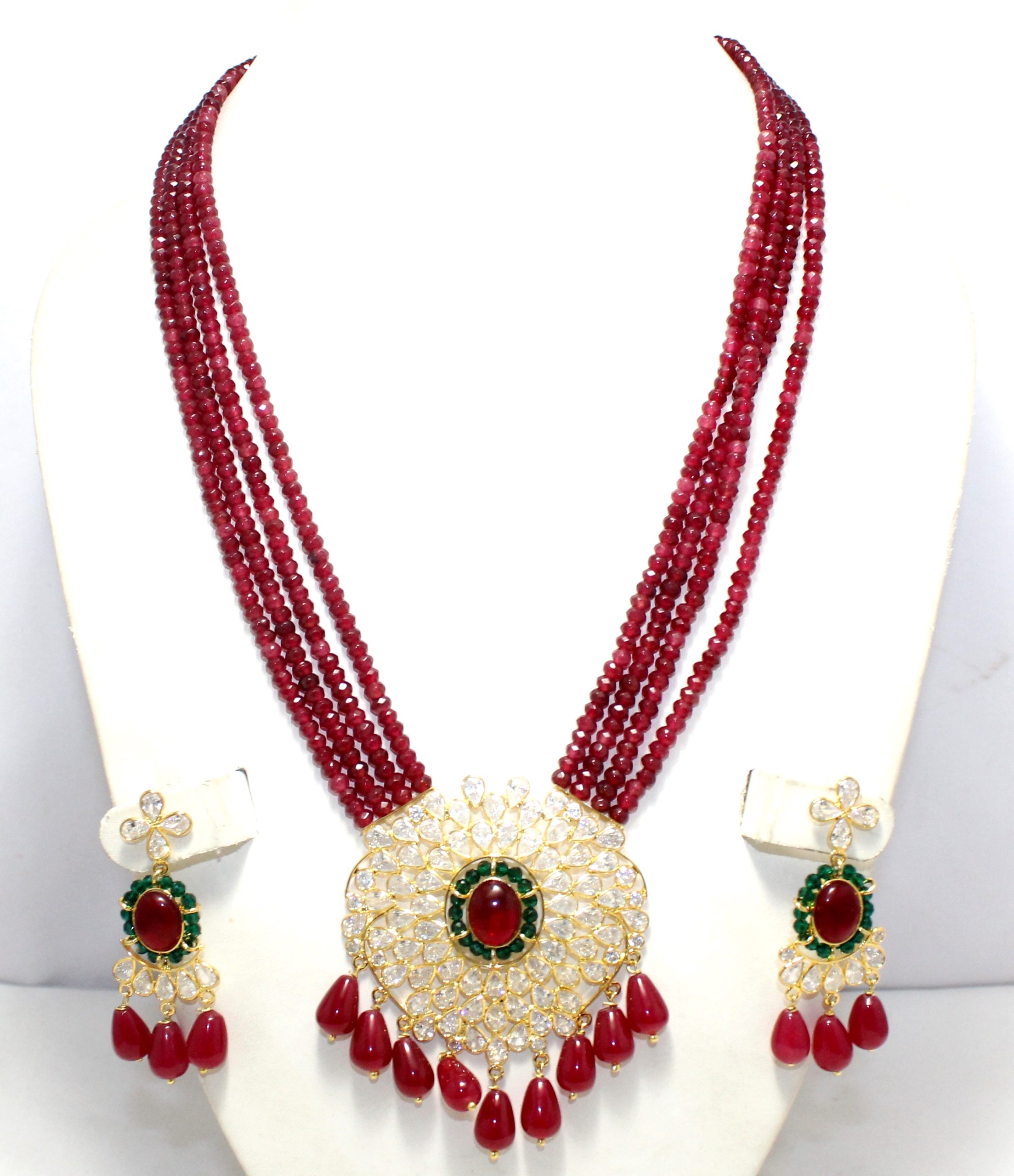 Home » Shop » Rajasthan Gems Wedding Necklace Earrings Jewellery Set Rose Cut Cubic Zirconia CZ Carved Stone Yellow Gold Rhodium Adjustable Women Handmade India Gift H287