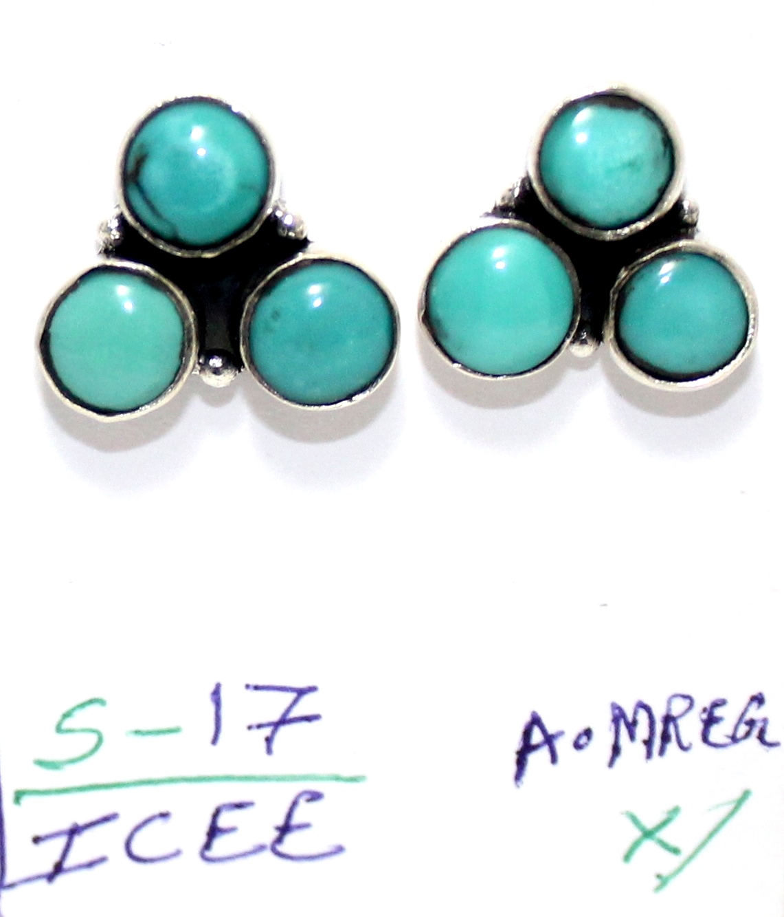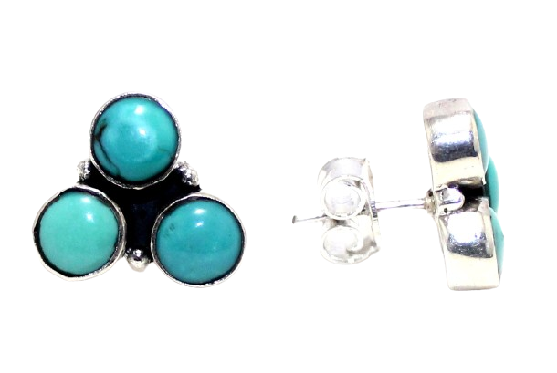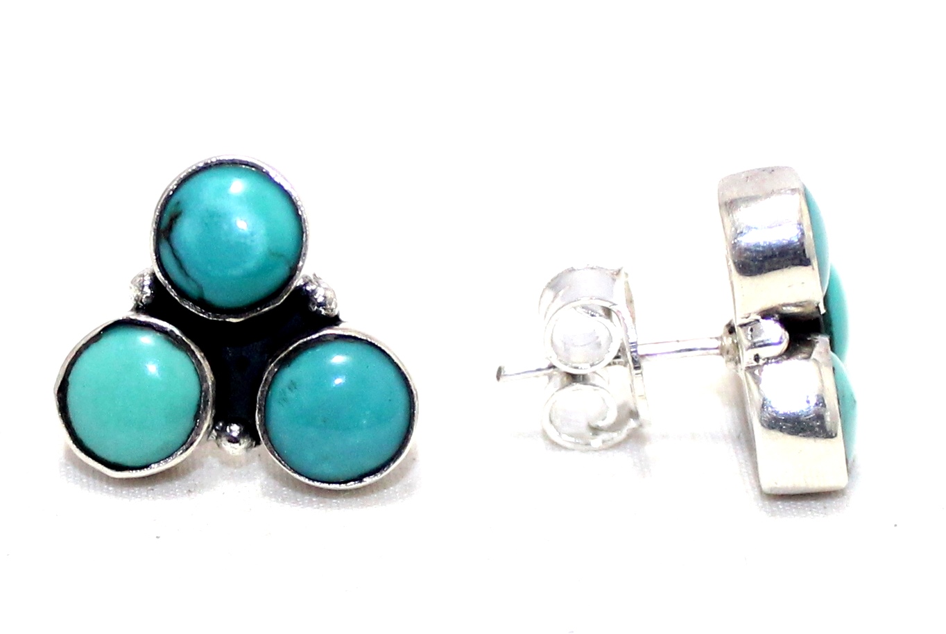 Stud Earrings Tops 925 Sterling Silver Natural Turquoise Gem Stone Women Handmade Gift H638
