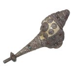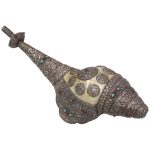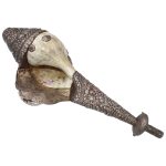 Presenting a beautiful Vintage Tibetan Conch Shell (Shankha) adorned with original precious silver work and set with natural Coral & Turquoise gemstones. This rare collectible piece reflects the rich spiritual and artistic heritage of Tibet and the Himalayan region.